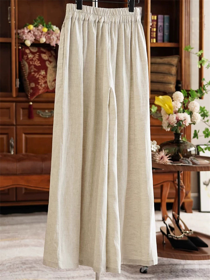 Women's Ethnic Style Embroidery Solid Color Elastic Waist Wide Leg Pants