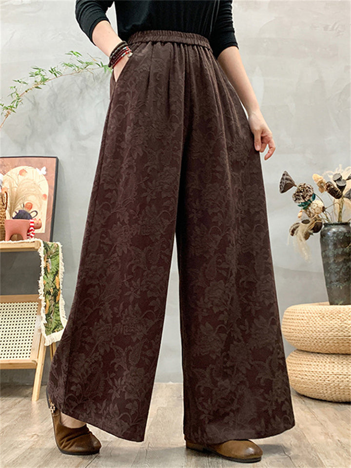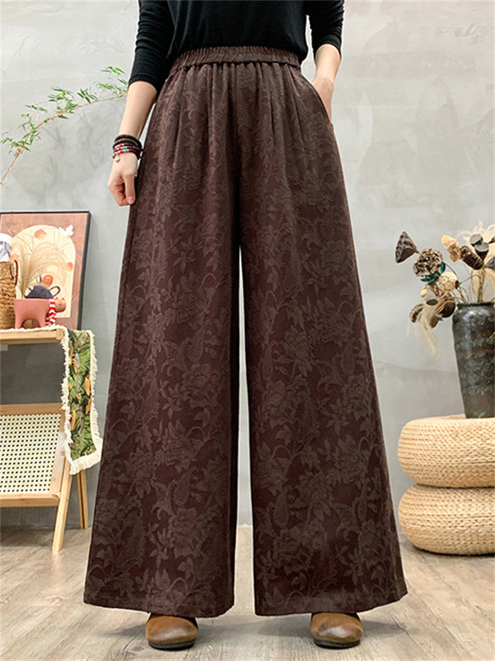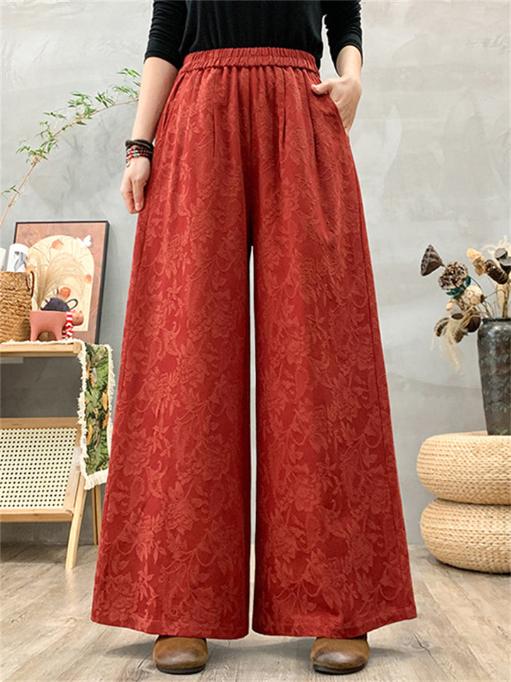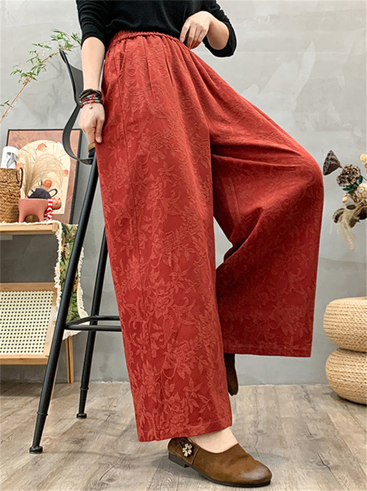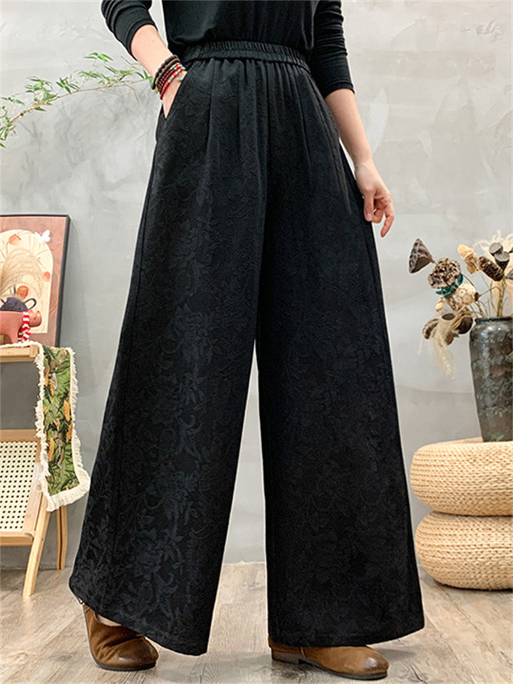 Women's Ethnic Style Jacquard Elastic High Waist Wide Leg Straight Pants