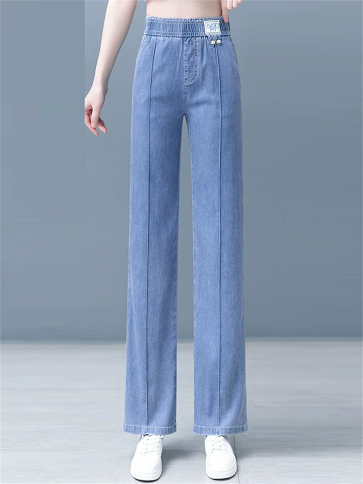 Women's Summer Comfy Elastic High Waist Drape Wide Leg Pants