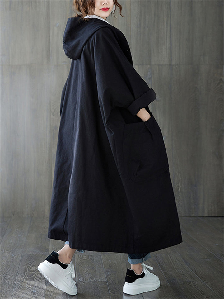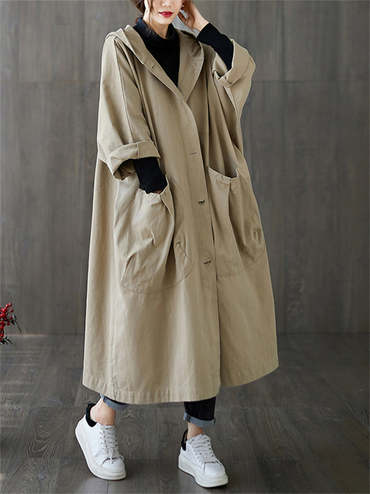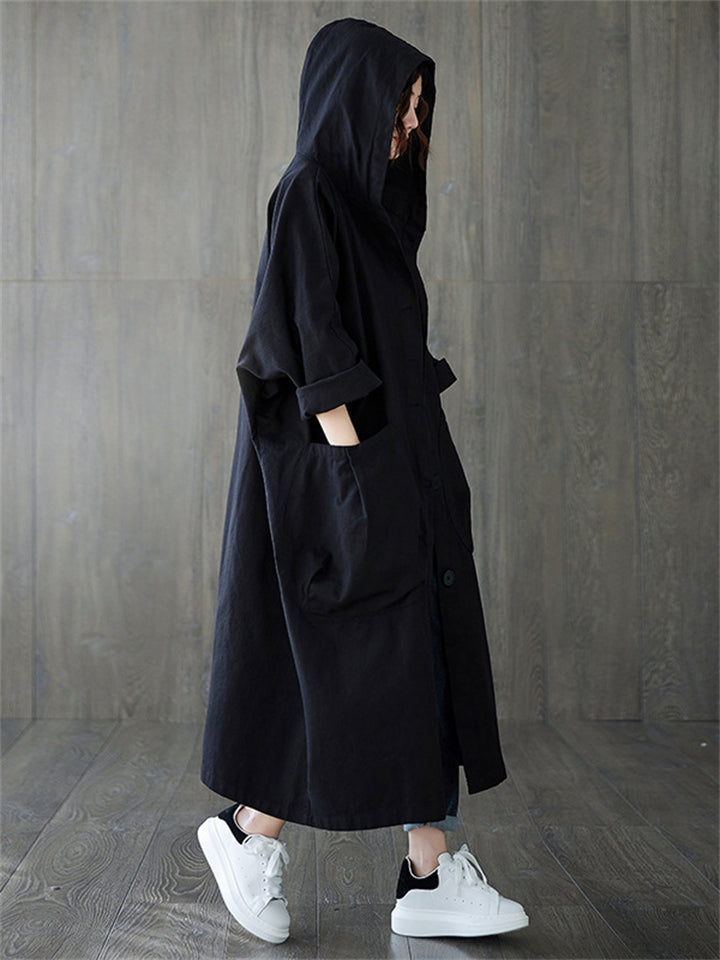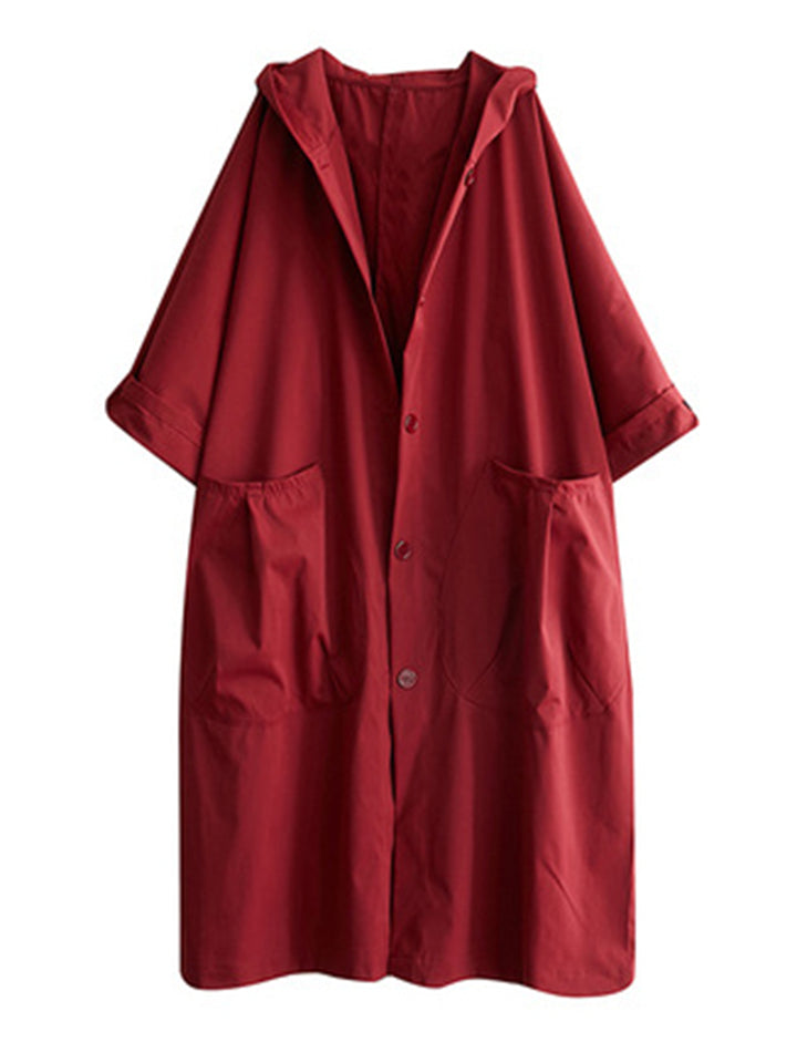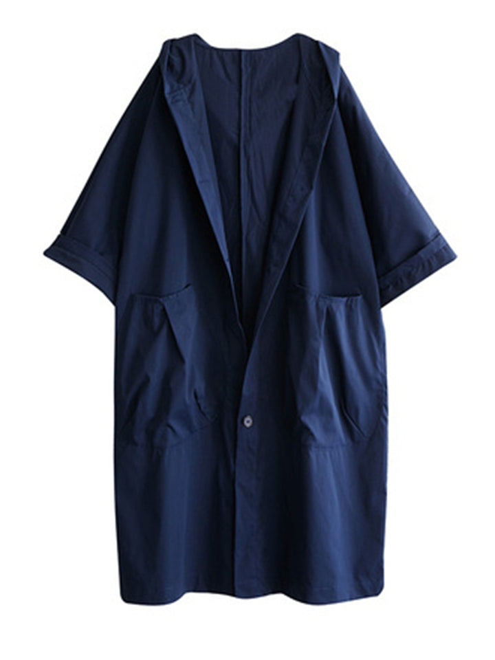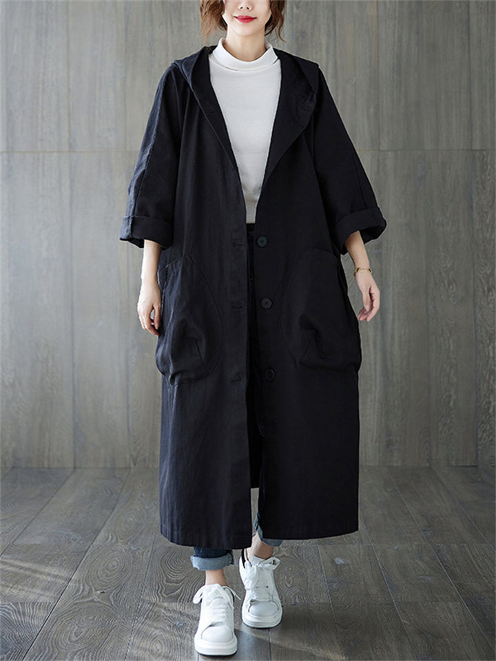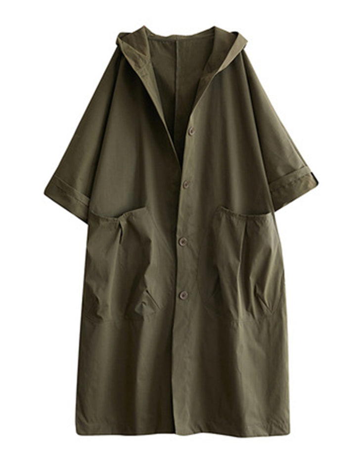 Retro Short Solid Solor Long Sleeve Pockets Coat for Women