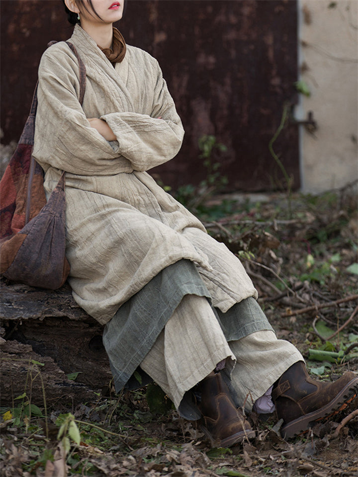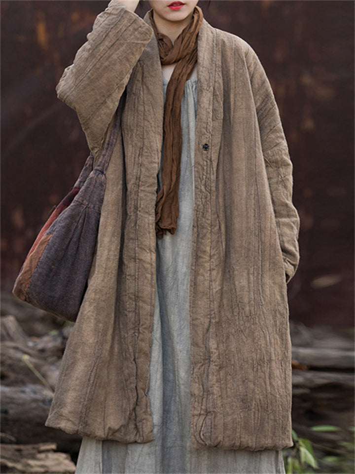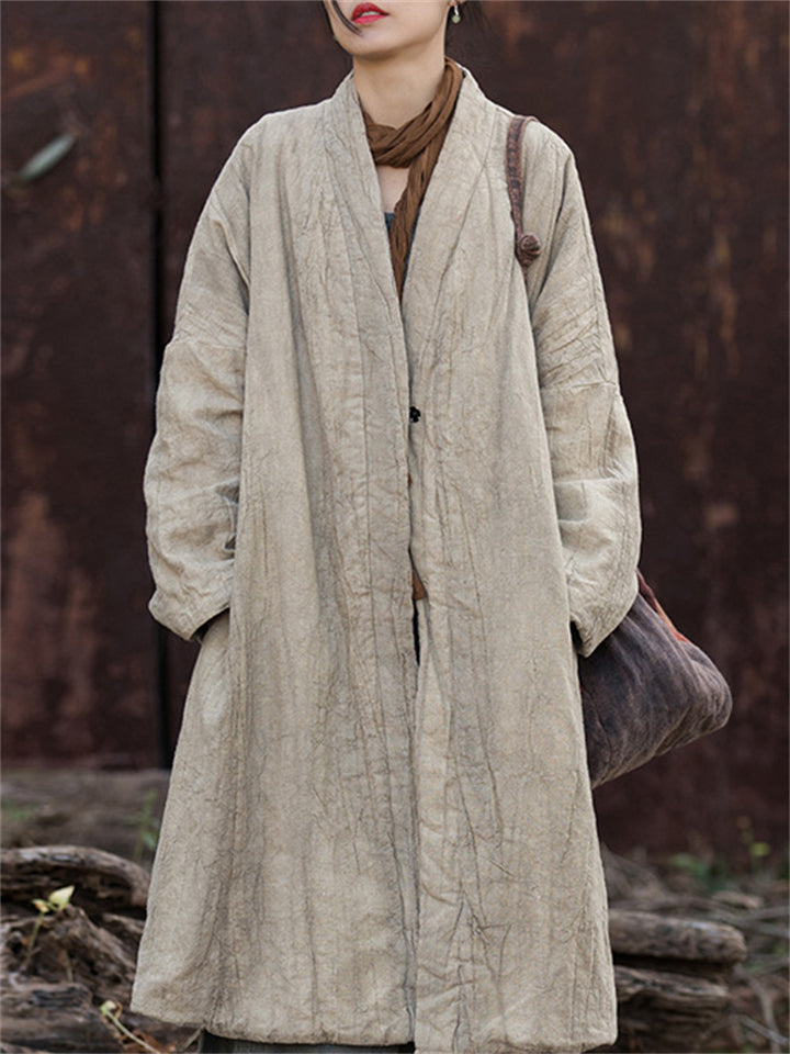 Women's Retro Simple Ethnic Style Patchwork Loose Long Sleeve Coat