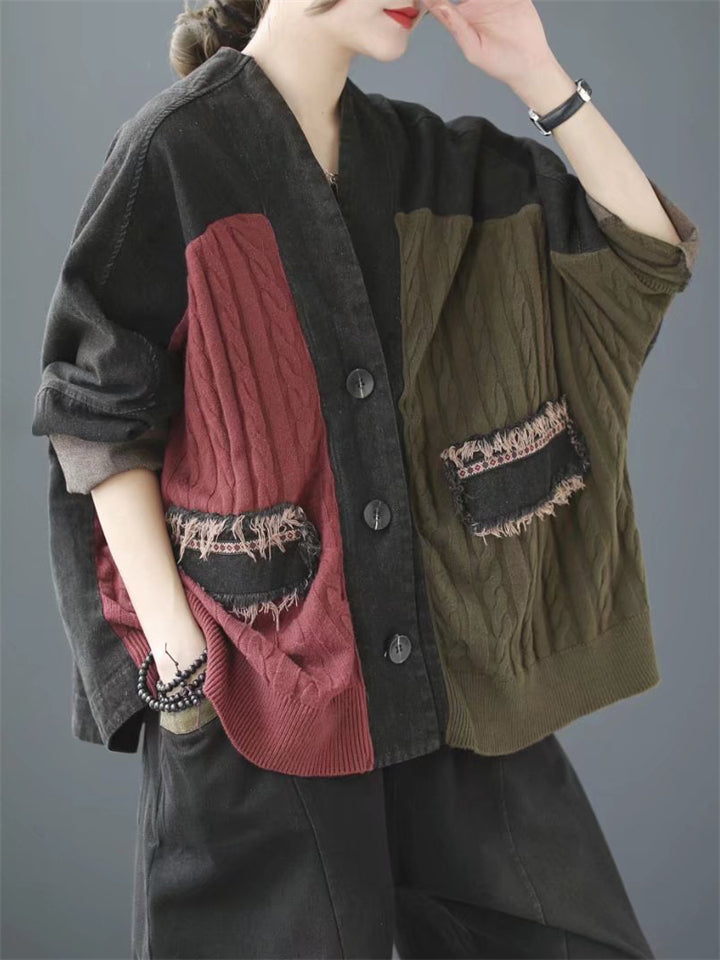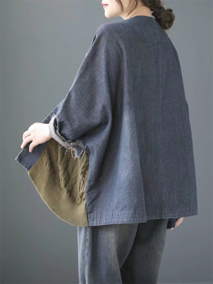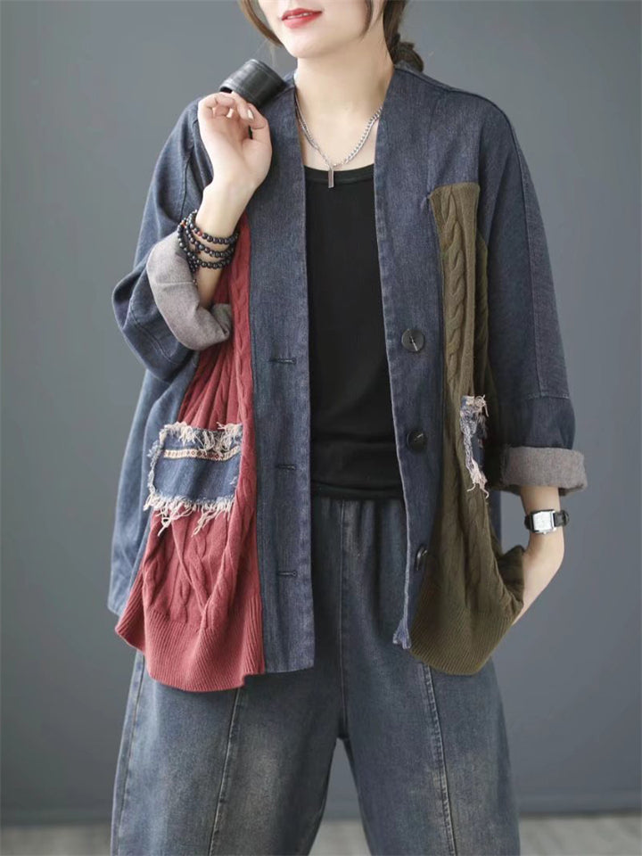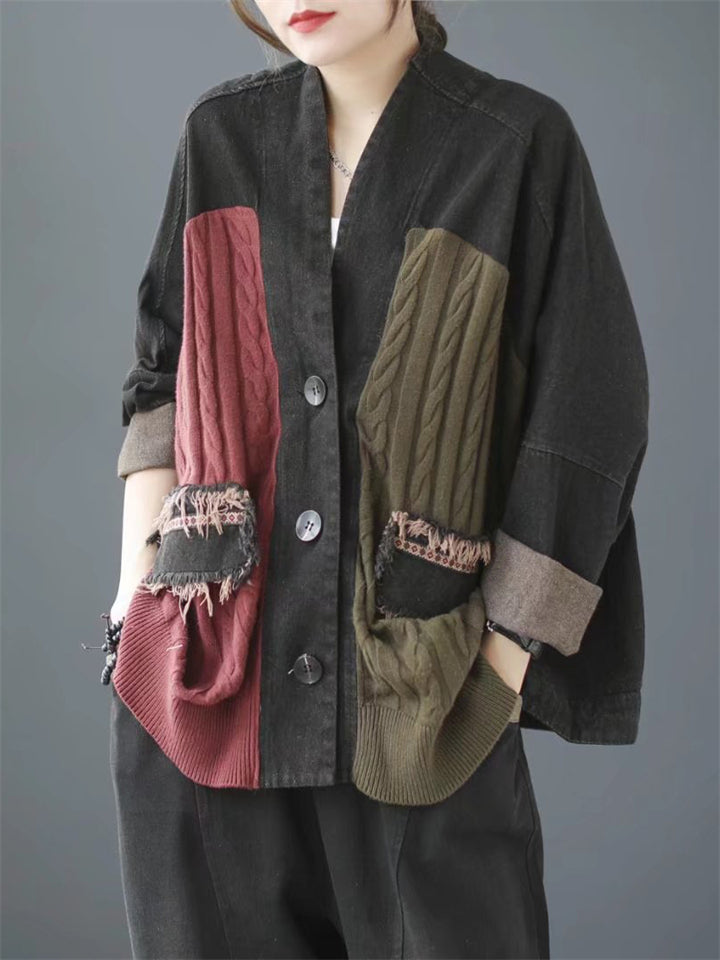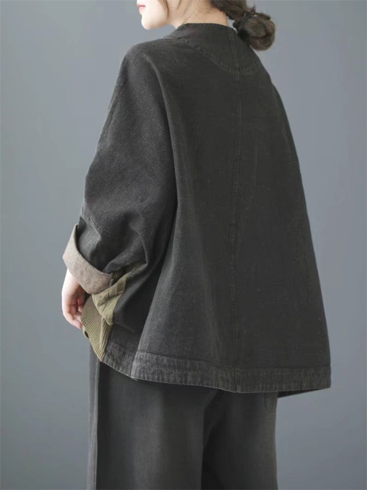 Women's Retro Simple Ethnic Style Patchwork Loose Long Sleeve Coat