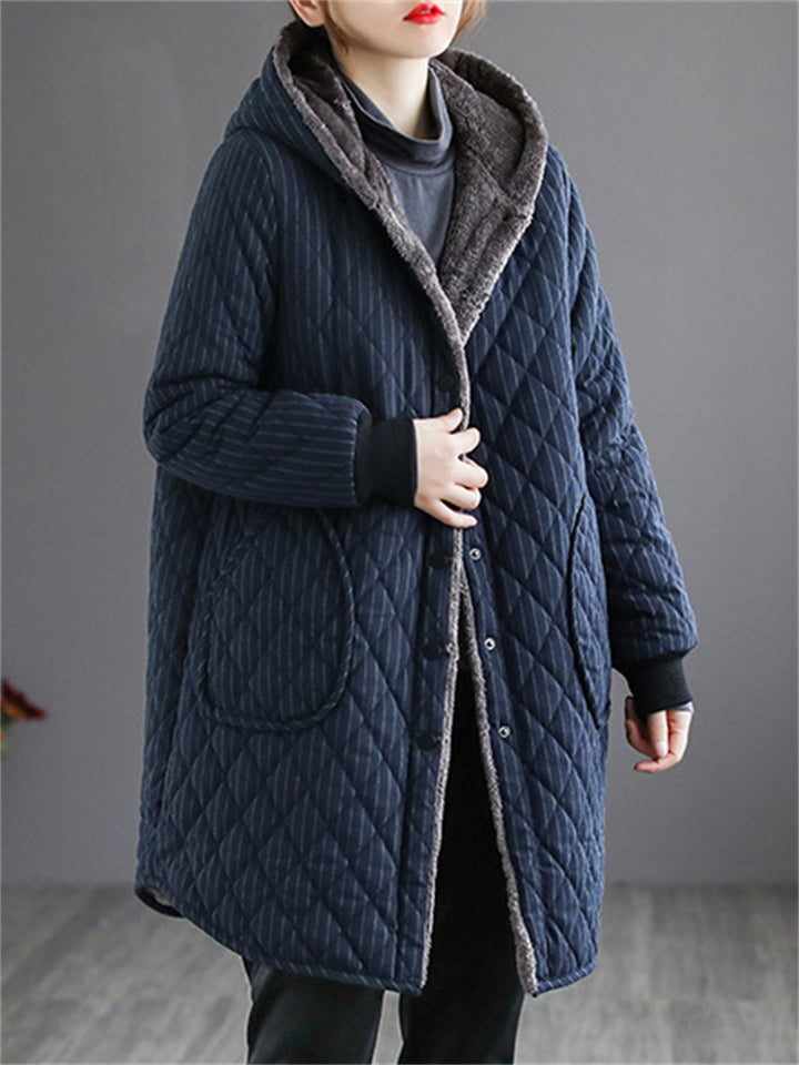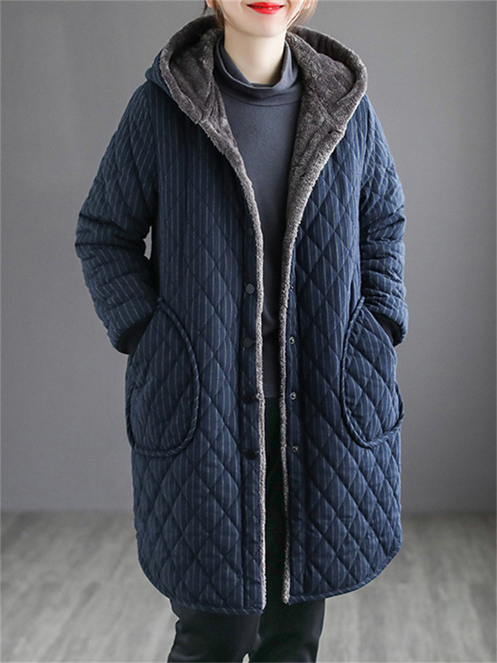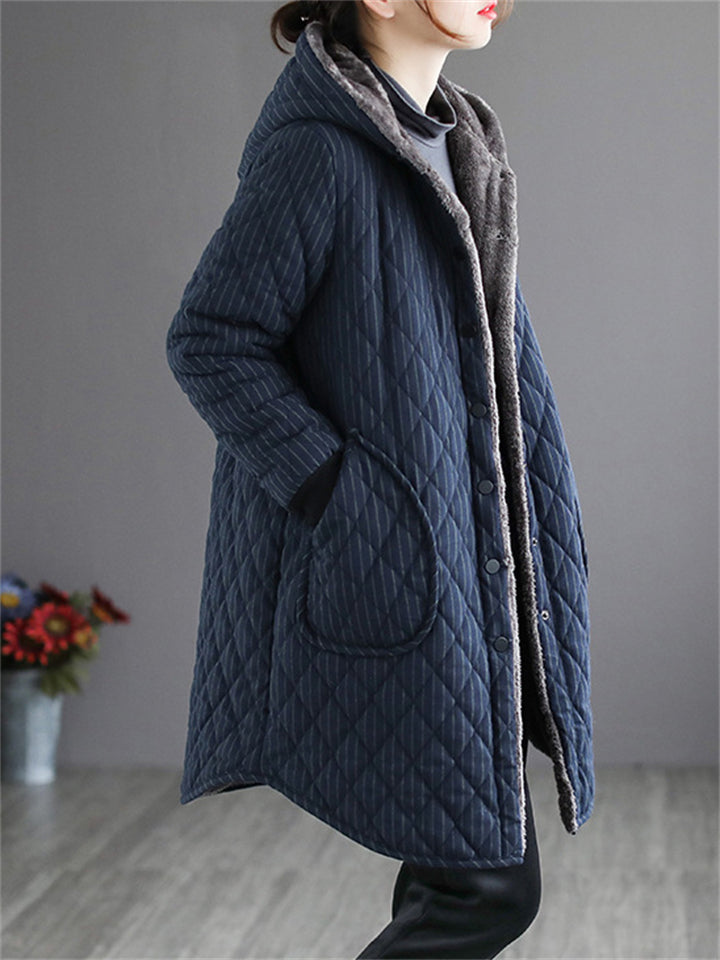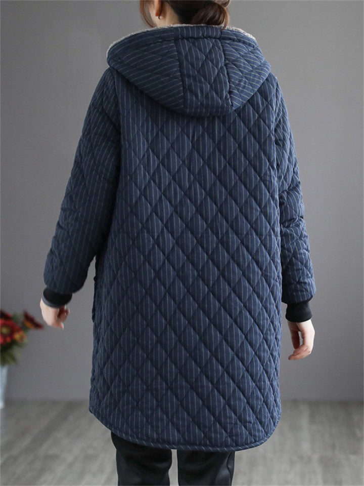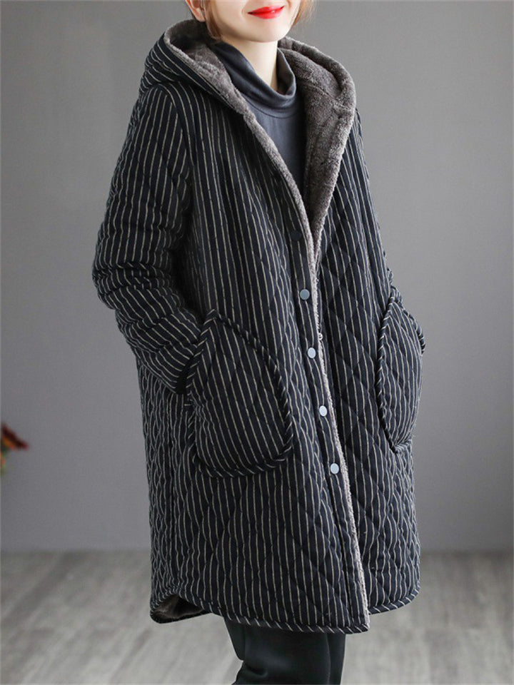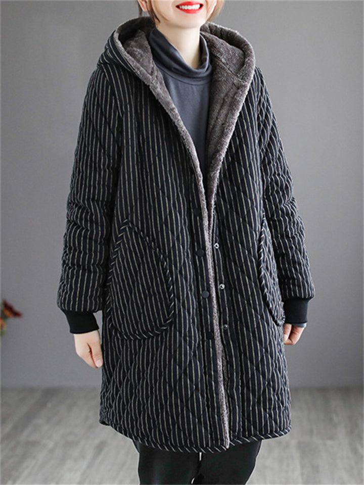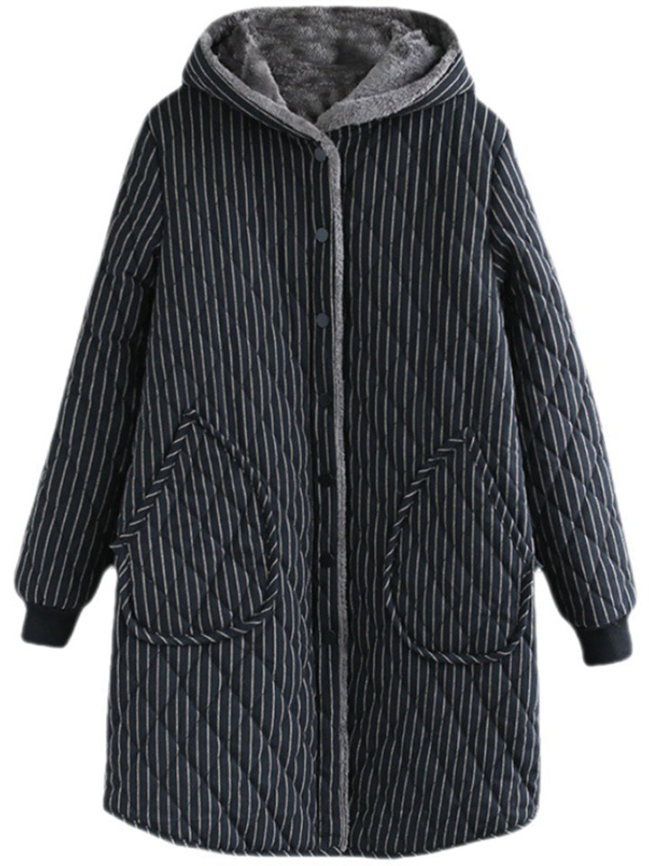 Female Striped Mid-length Hooded Thickened Cotton Coats