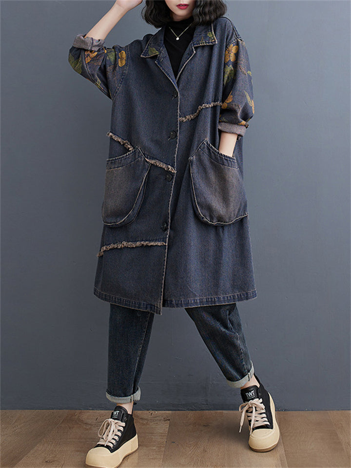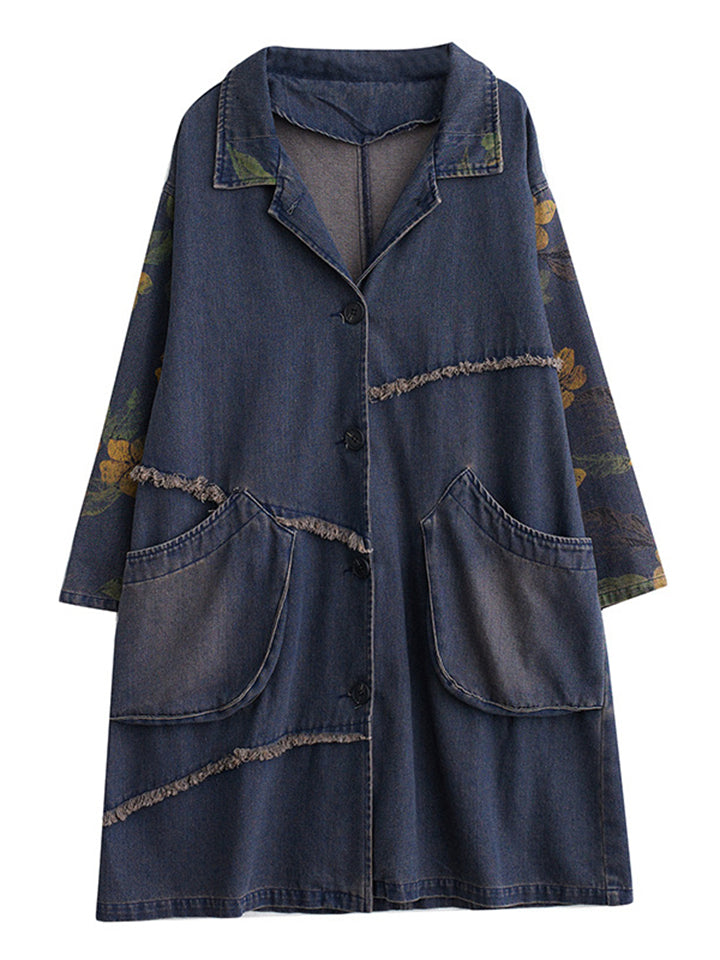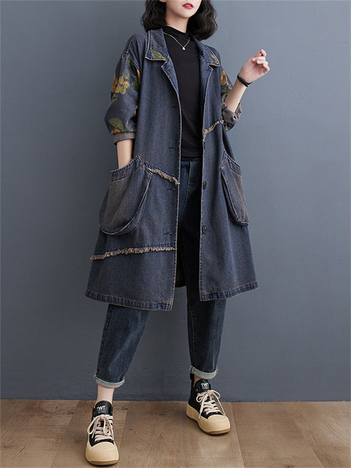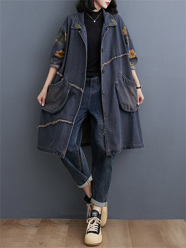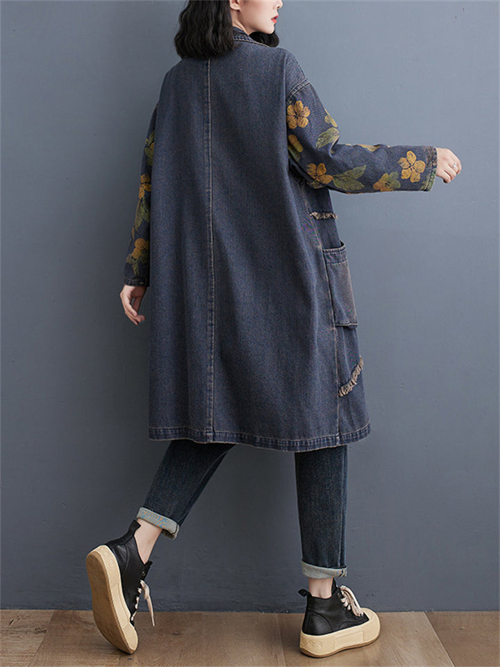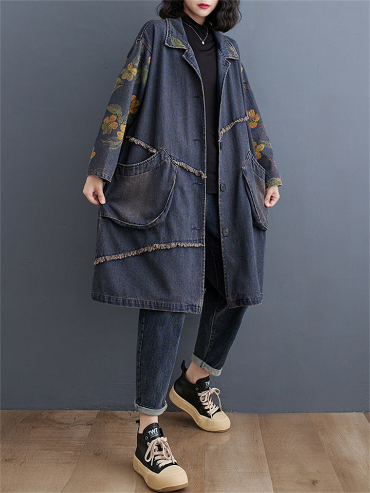 Women's Retro Simple Ethnic Style Patchwork Loose Long Sleeve Coat