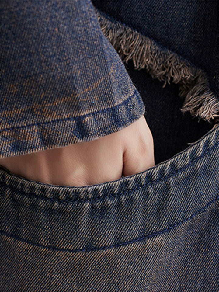 Women's Winter Vintage Contrast Trim Fleeced Faux Suede Long Sleeve Coats