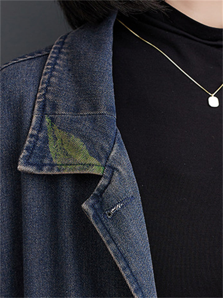 Women's Autumn Blue Printed Long Sleeve Lace Up Cardigan Coat