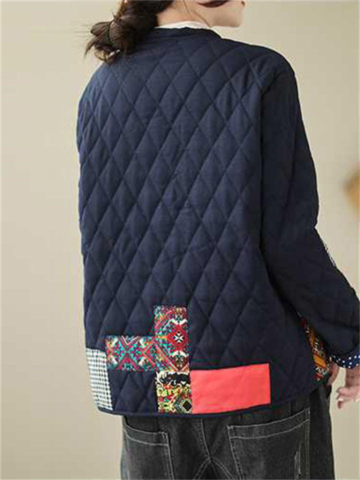 Women's Retro Simple Ethnic Style Patchwork Loose Long Sleeve Coat