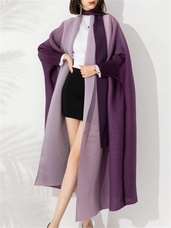 Leisure Gradient Color Flowy Long Coat for Lady