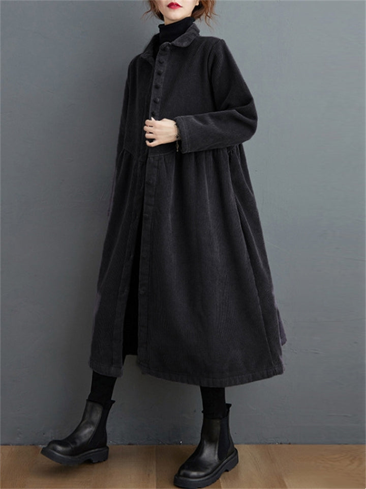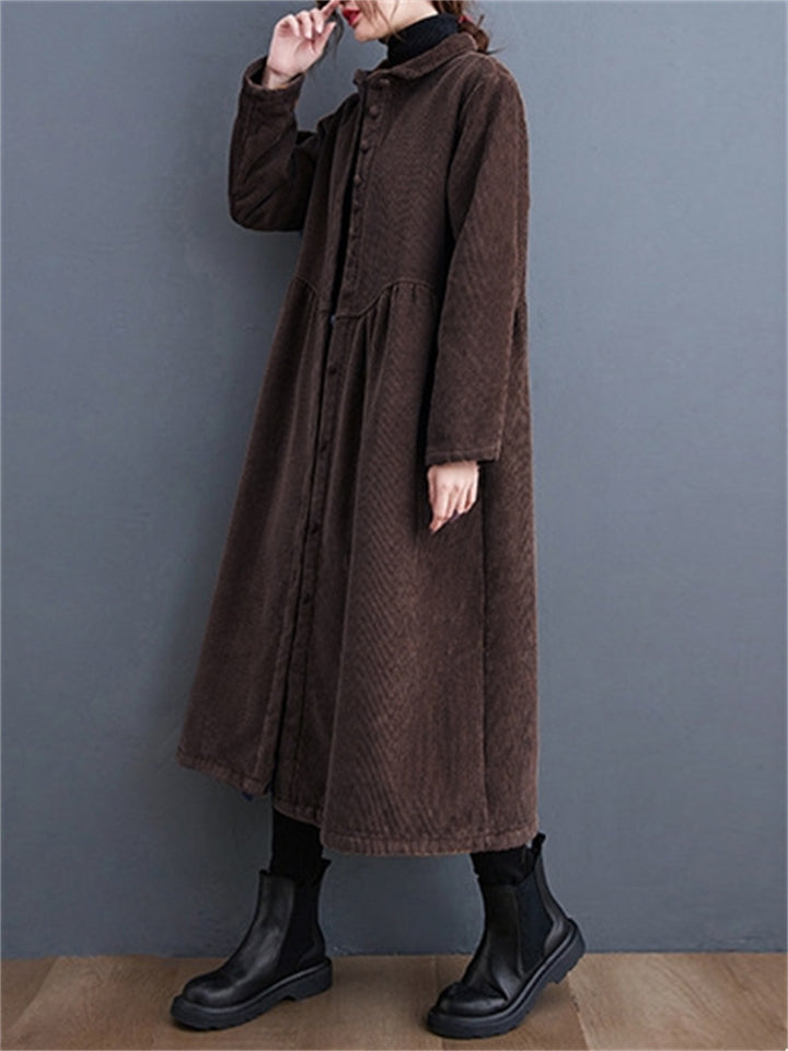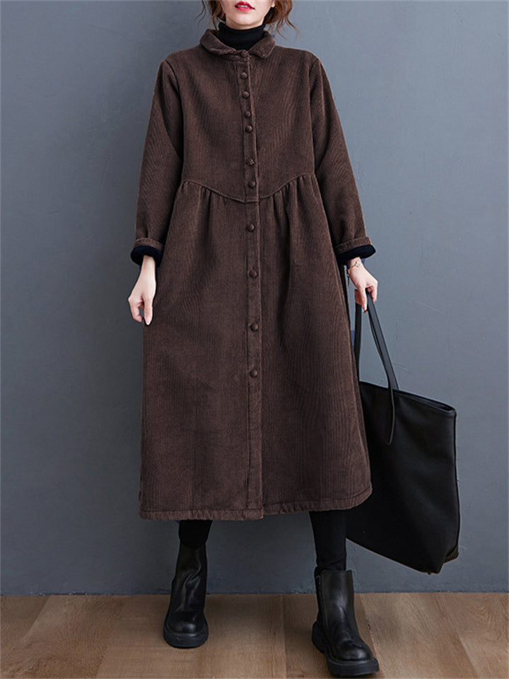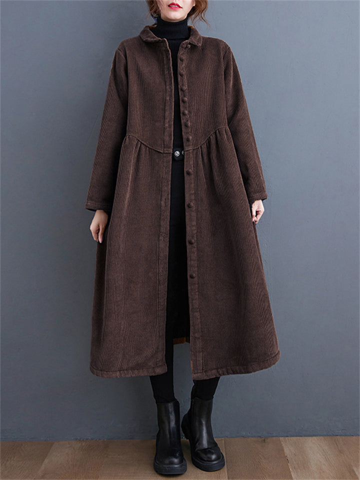 Long-sleeved Thick Single-breasted Corduroy Long Coats for Women