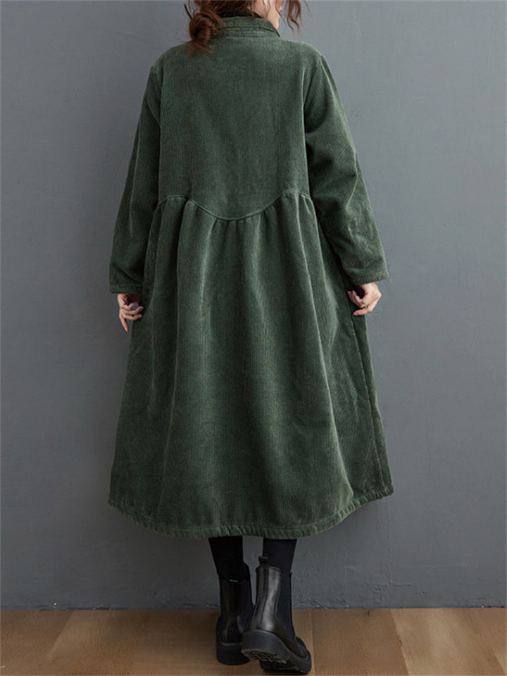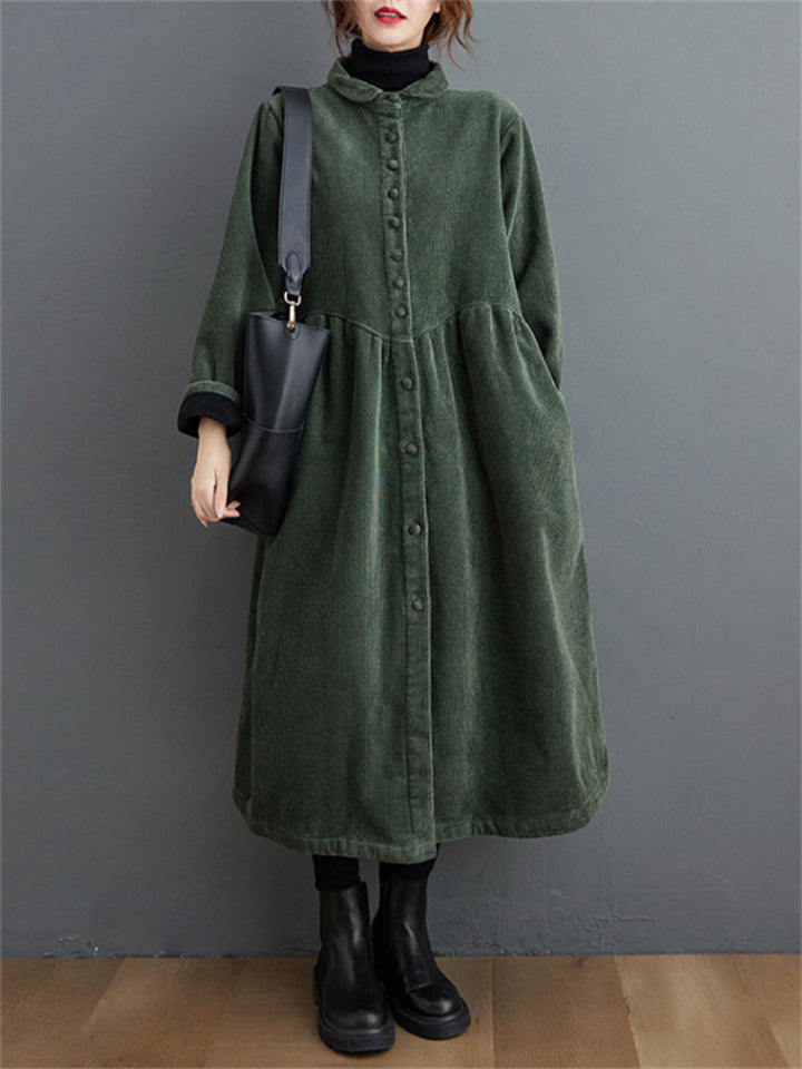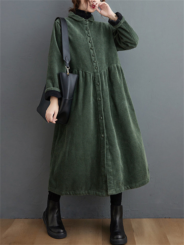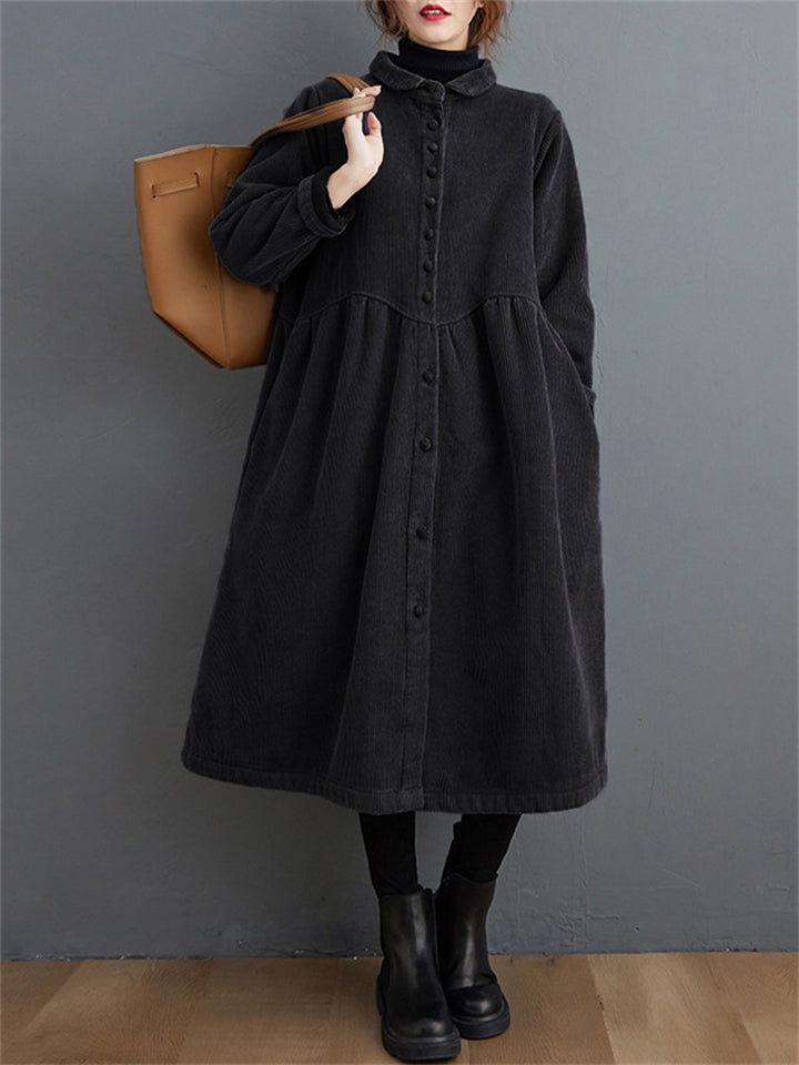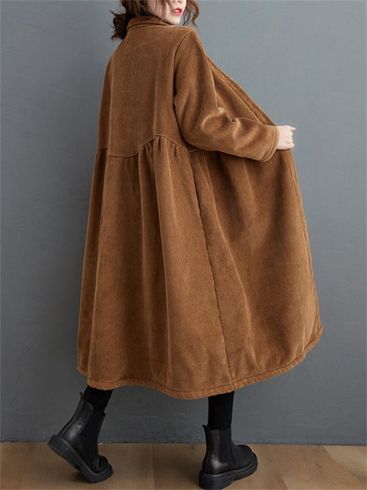 Long-sleeved Thick Single-breasted Corduroy Long Coats for Women