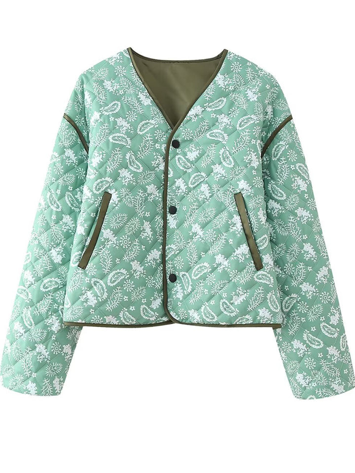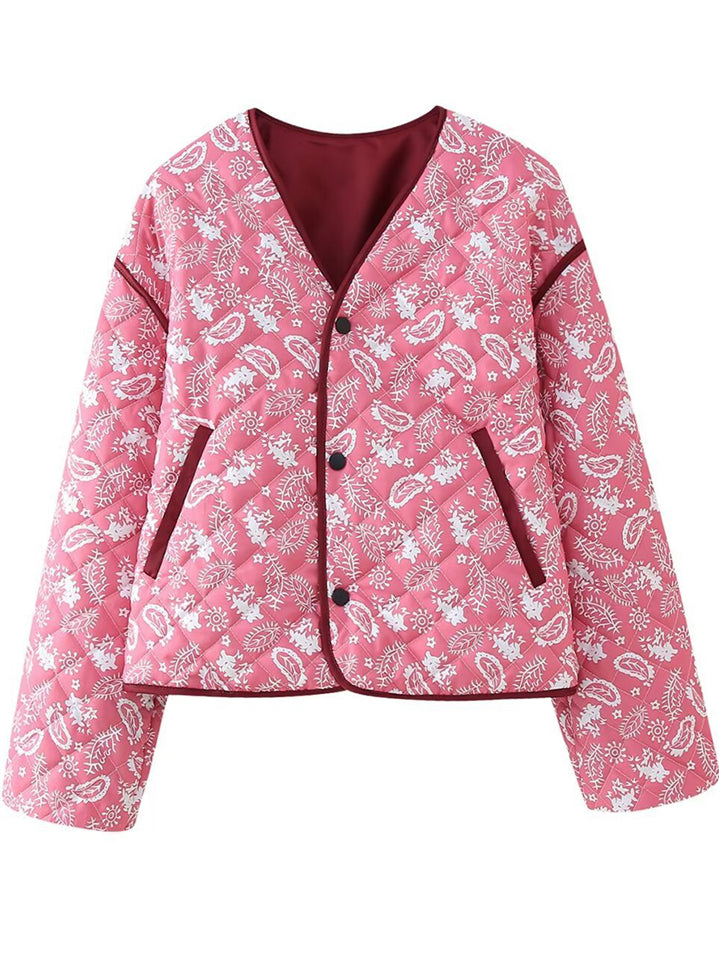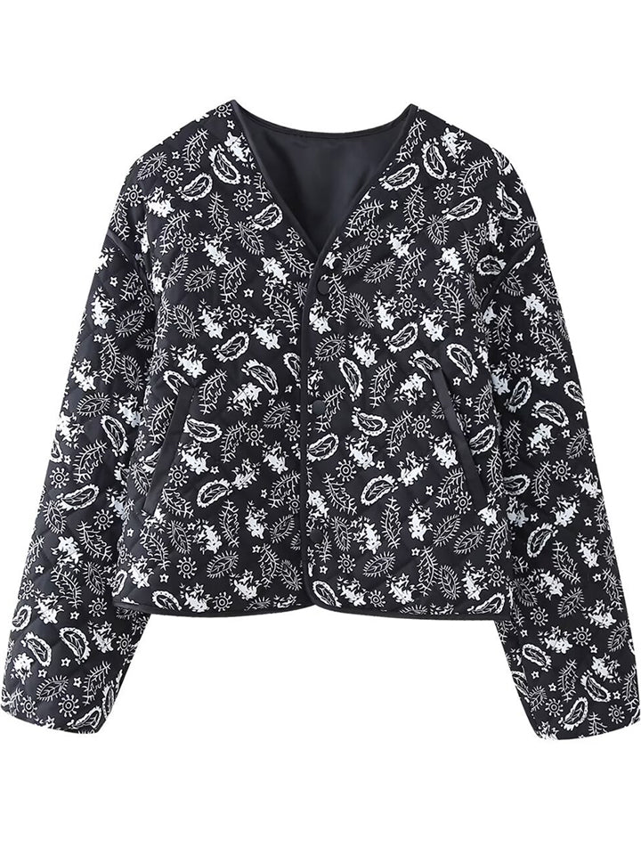 Women's Casual Print Waist Length Cotton-padded Jacket