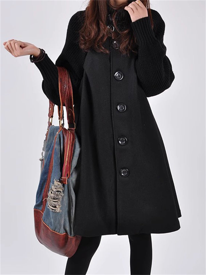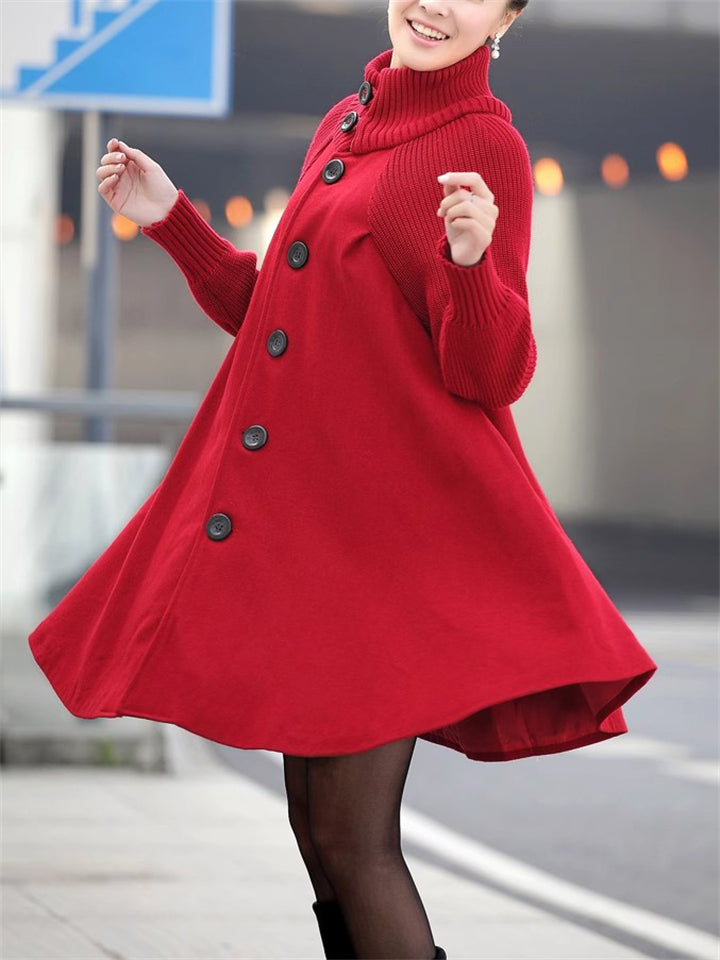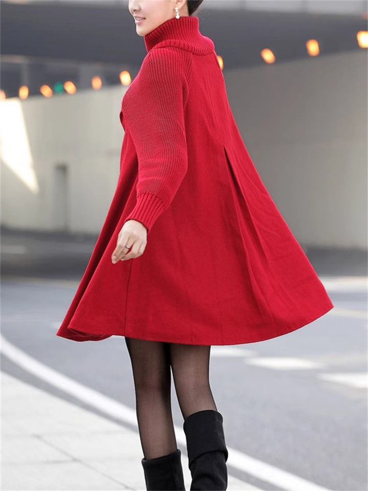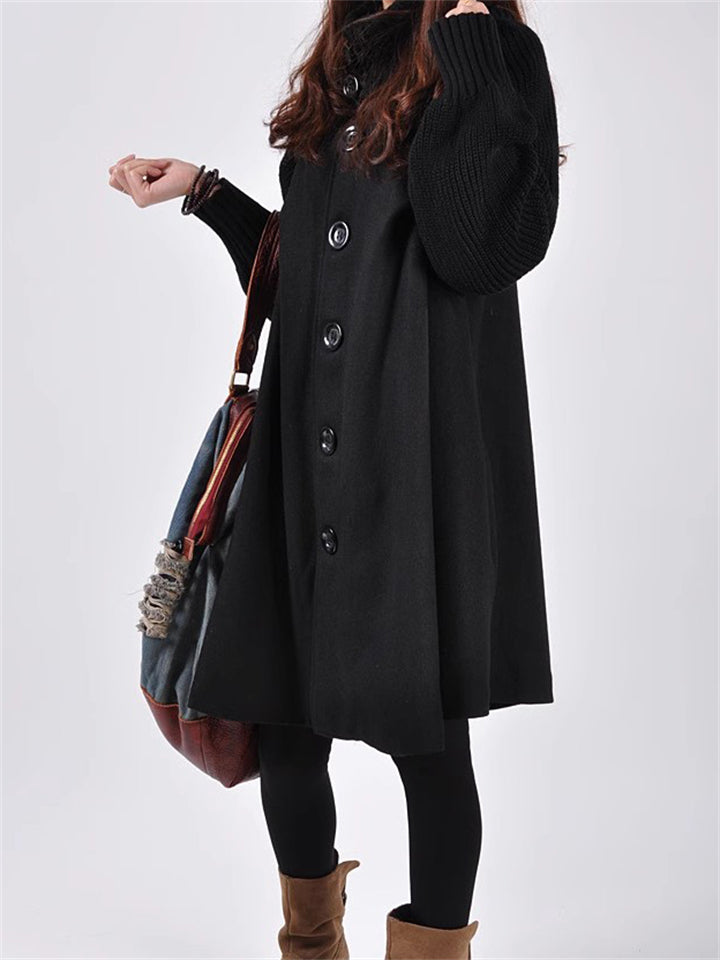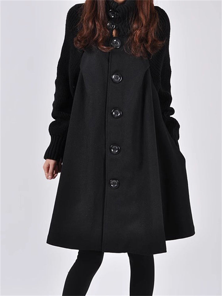 Women's Chic Splicing High Neck Elegant Cape Woolen Coat