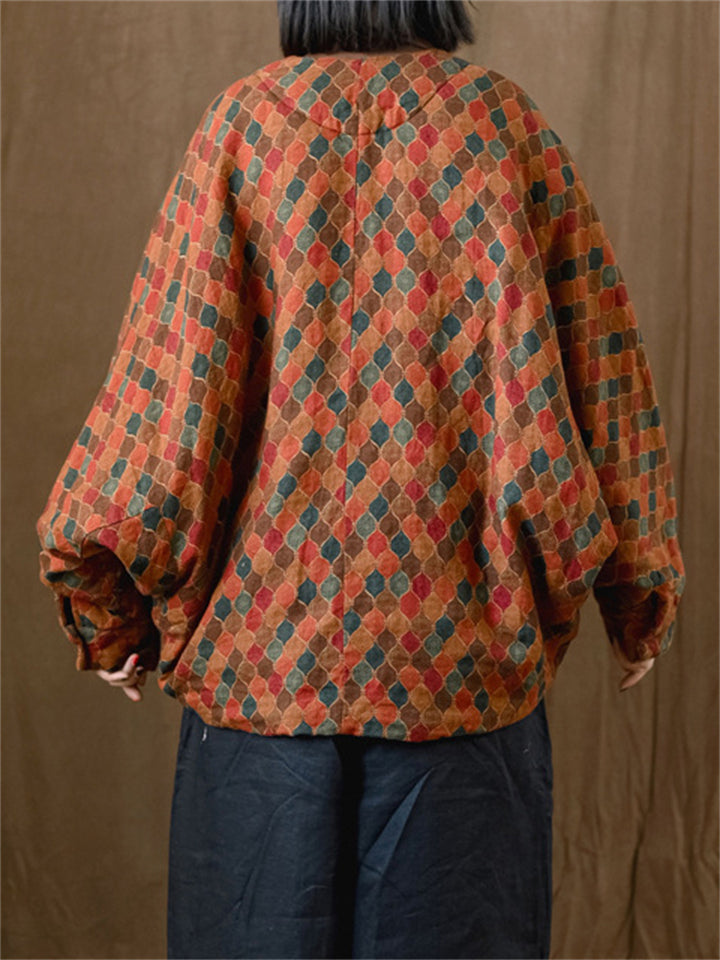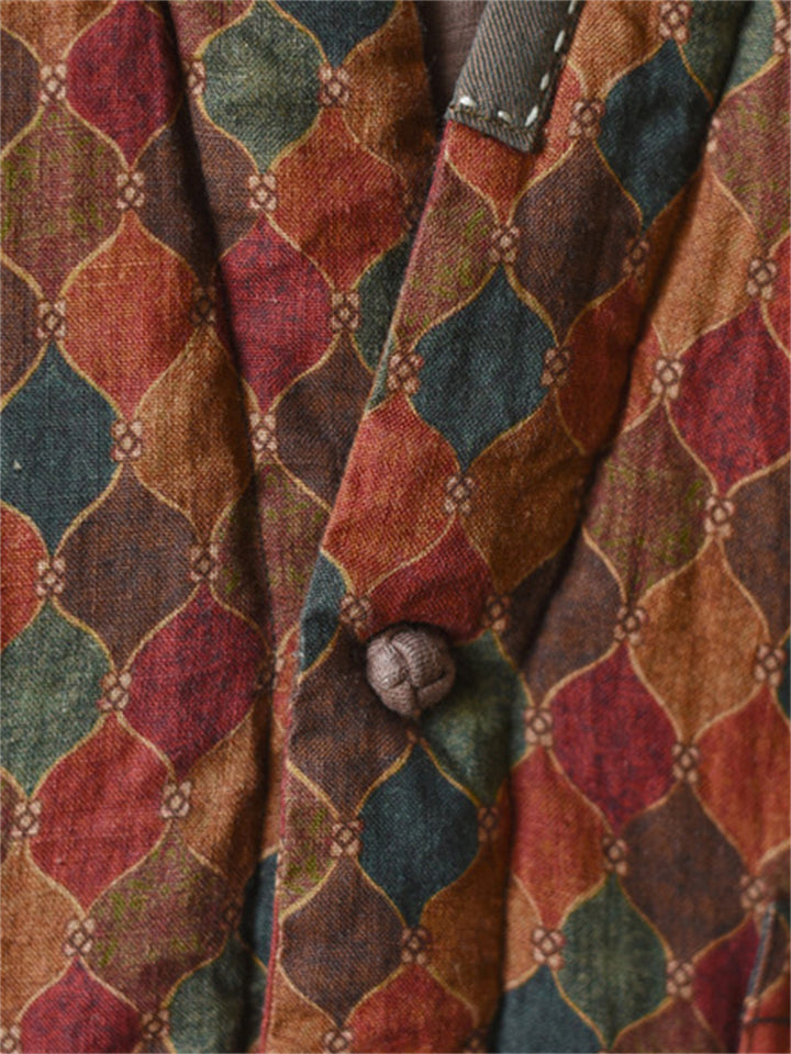 Women's Winter Retro Ethnic Style Geometric Print Cardigan Coat