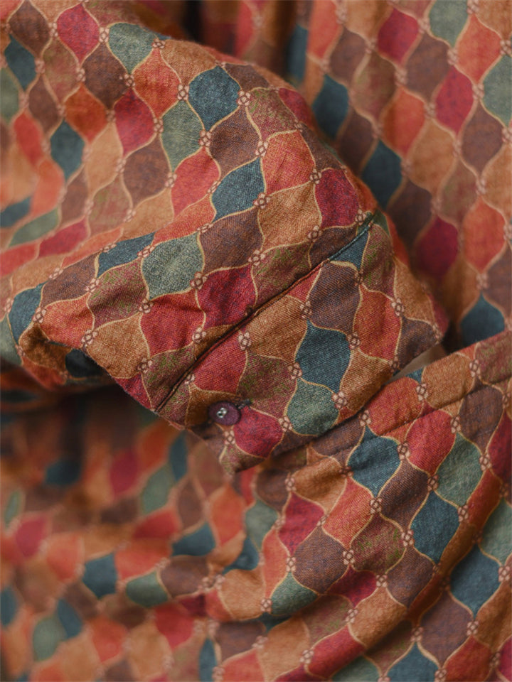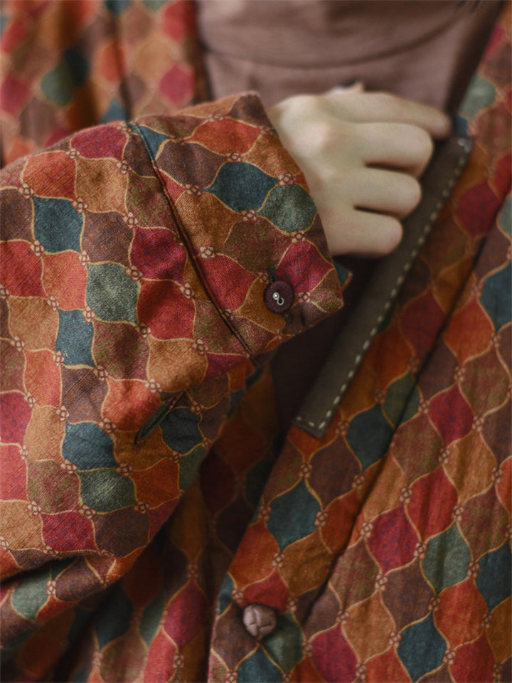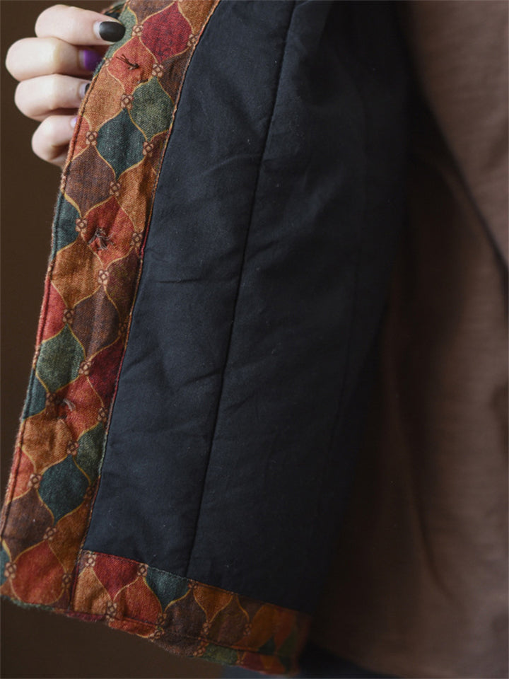 Women's Retro Print Stand Collar Long Sleeve Padded Coat