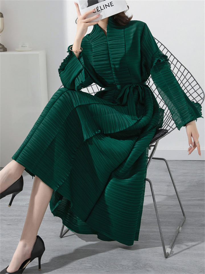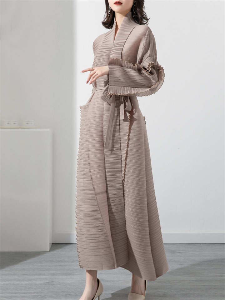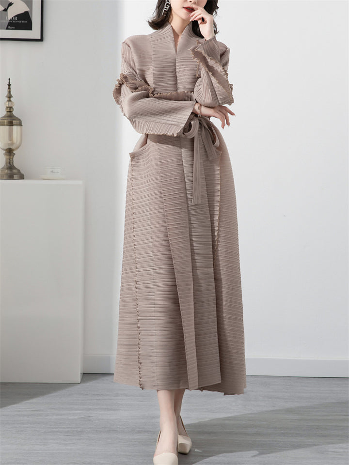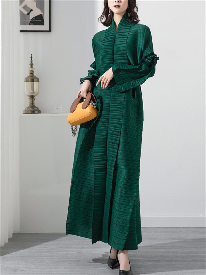 Women's Print Pleated Long Sleeve Cardigan Coat