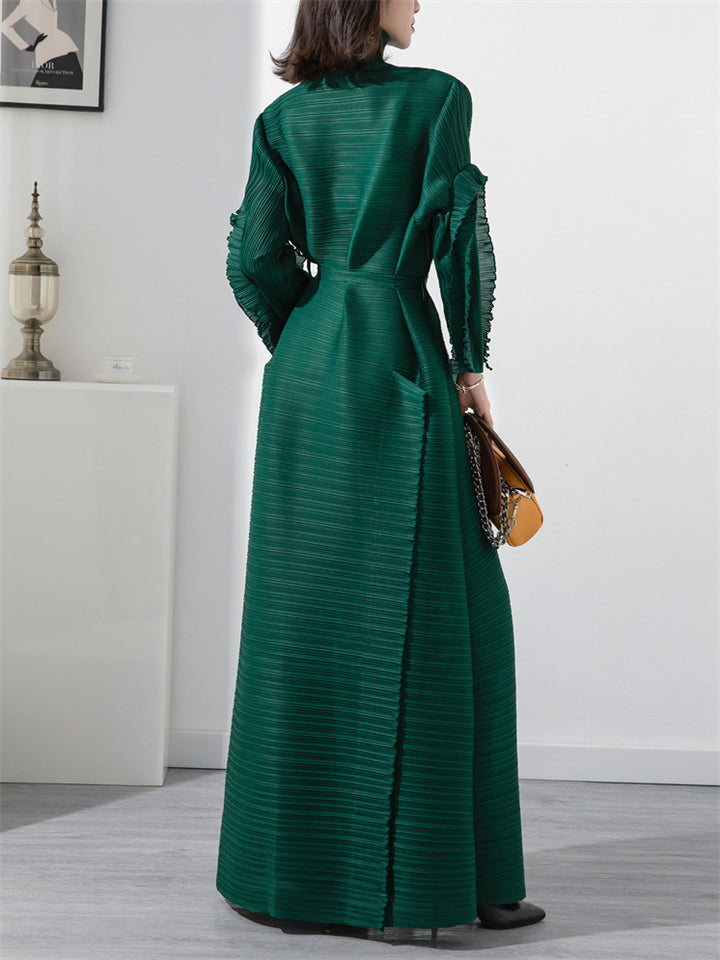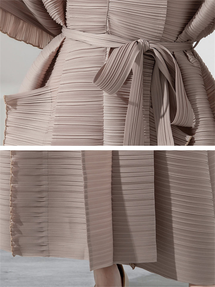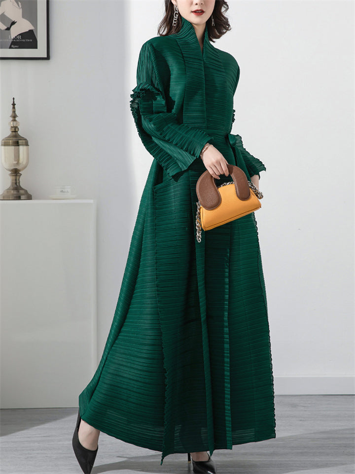 Women's Elegant High Collar Lace Up Midi Dress Coat
