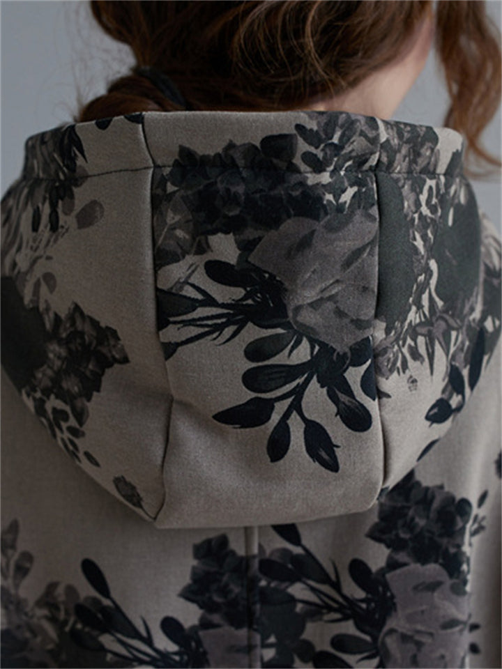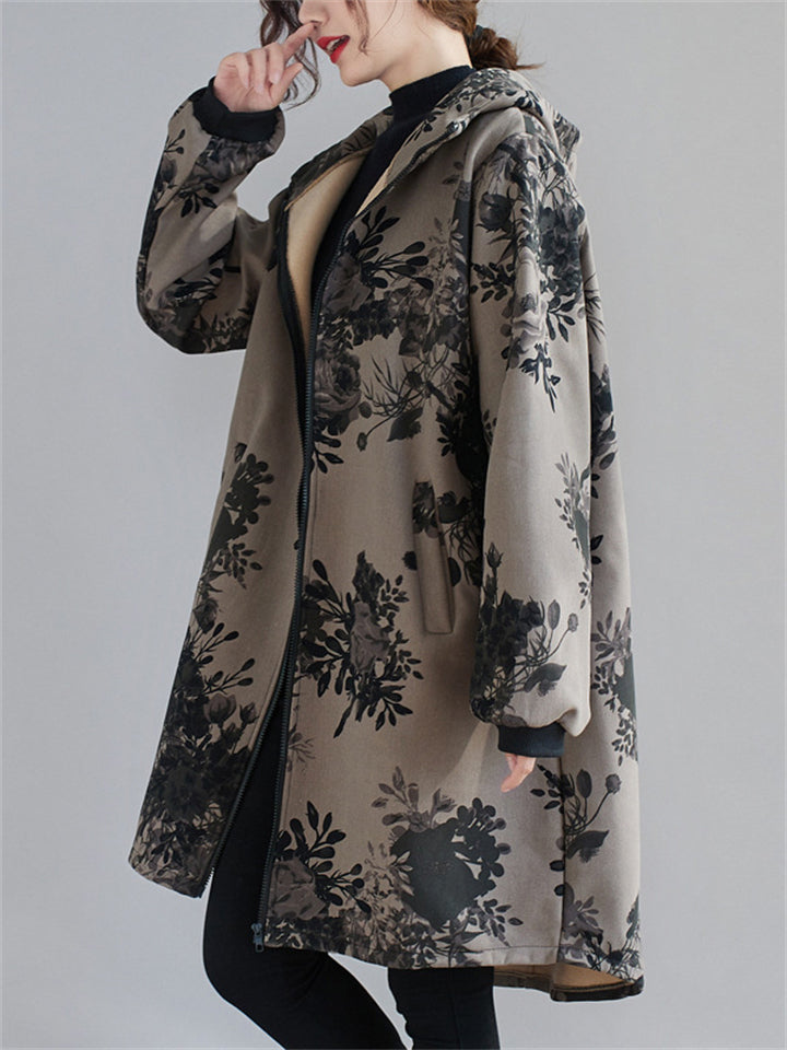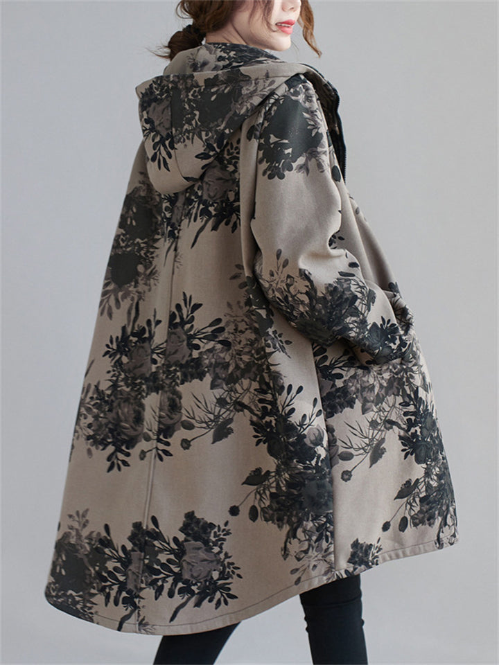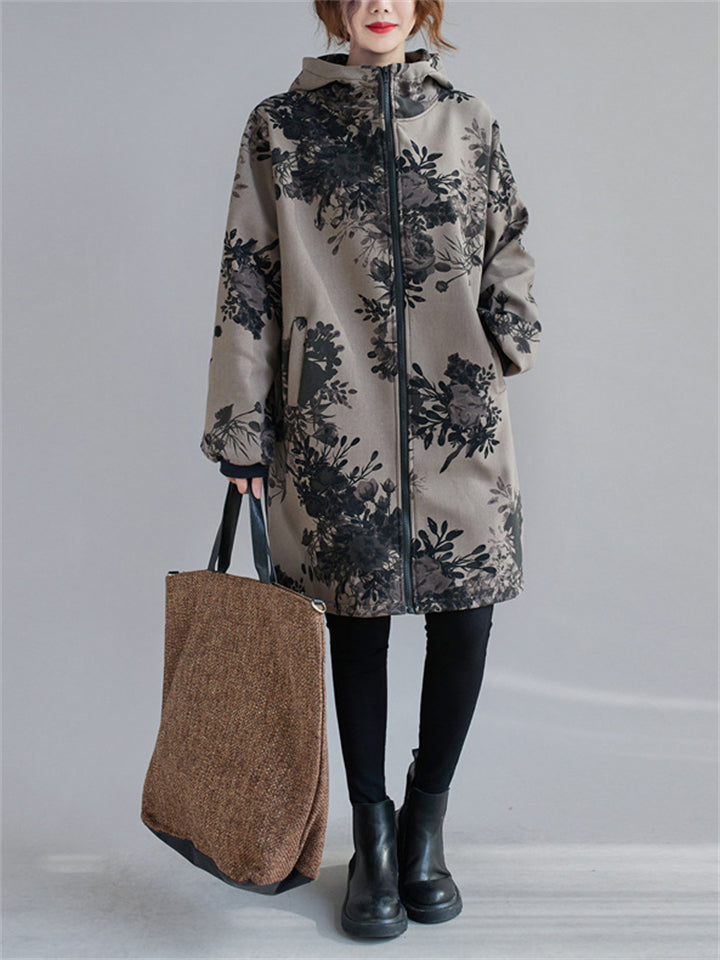 Women's Retro Print Stand Collar Long Sleeve Padded Coat