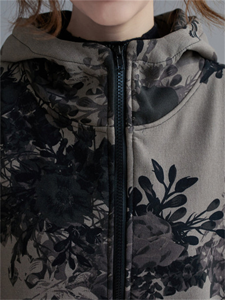Women's Casual Print Waist Length Cotton-padded Jacket