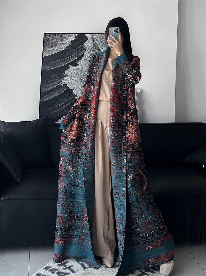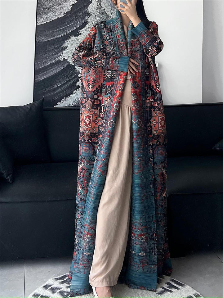 Women's Print Pleated Long Sleeve Cardigan Coat