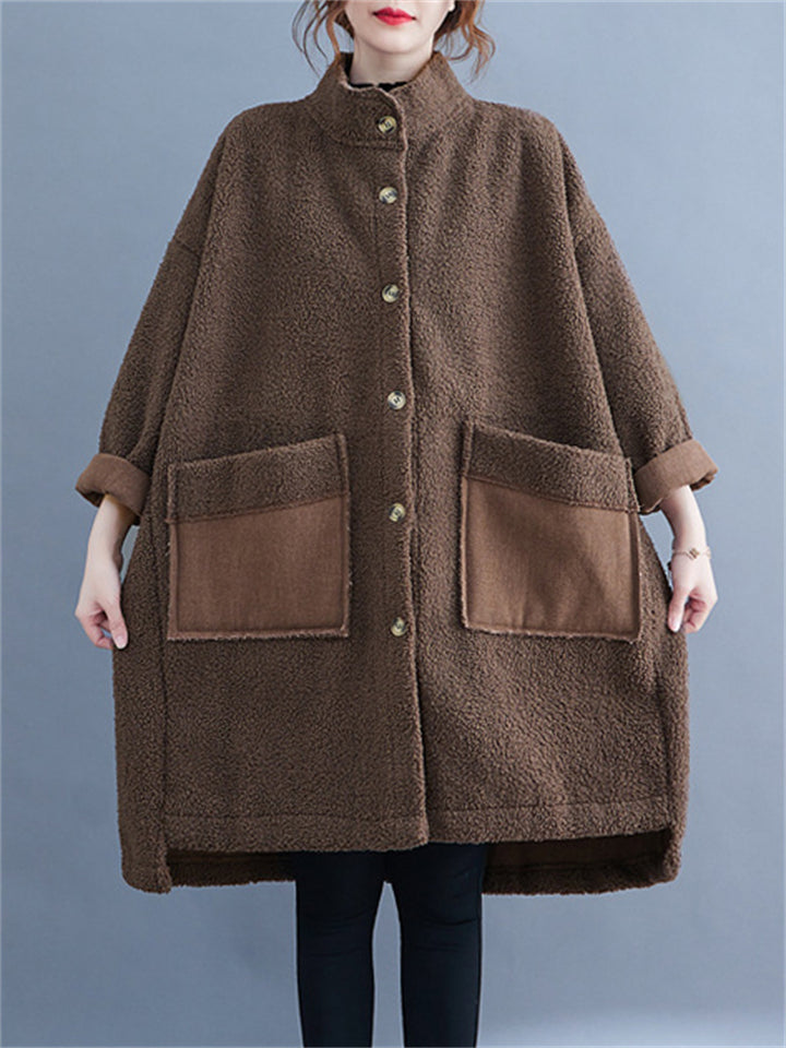 Women's Retro Simple Ethnic Style Patchwork Loose Long Sleeve Coat