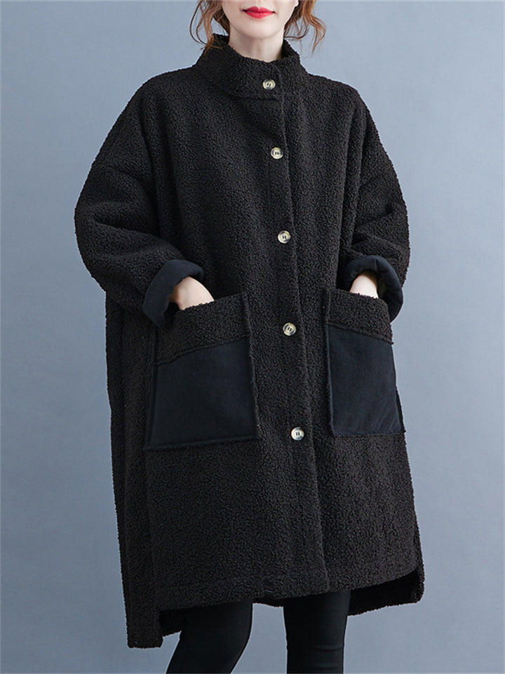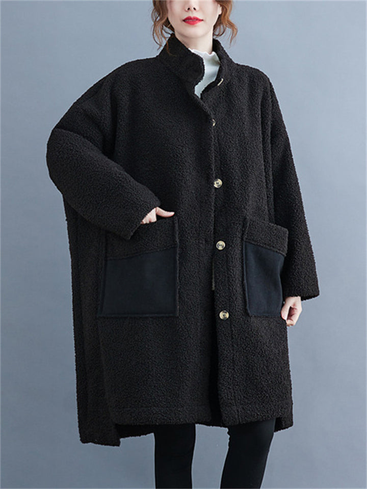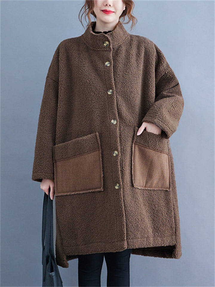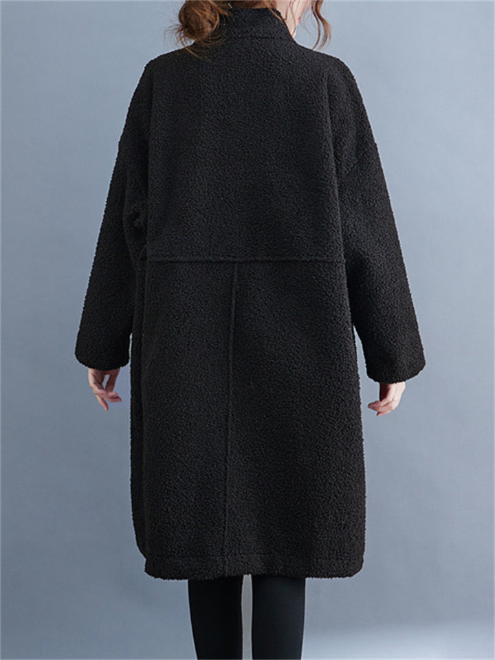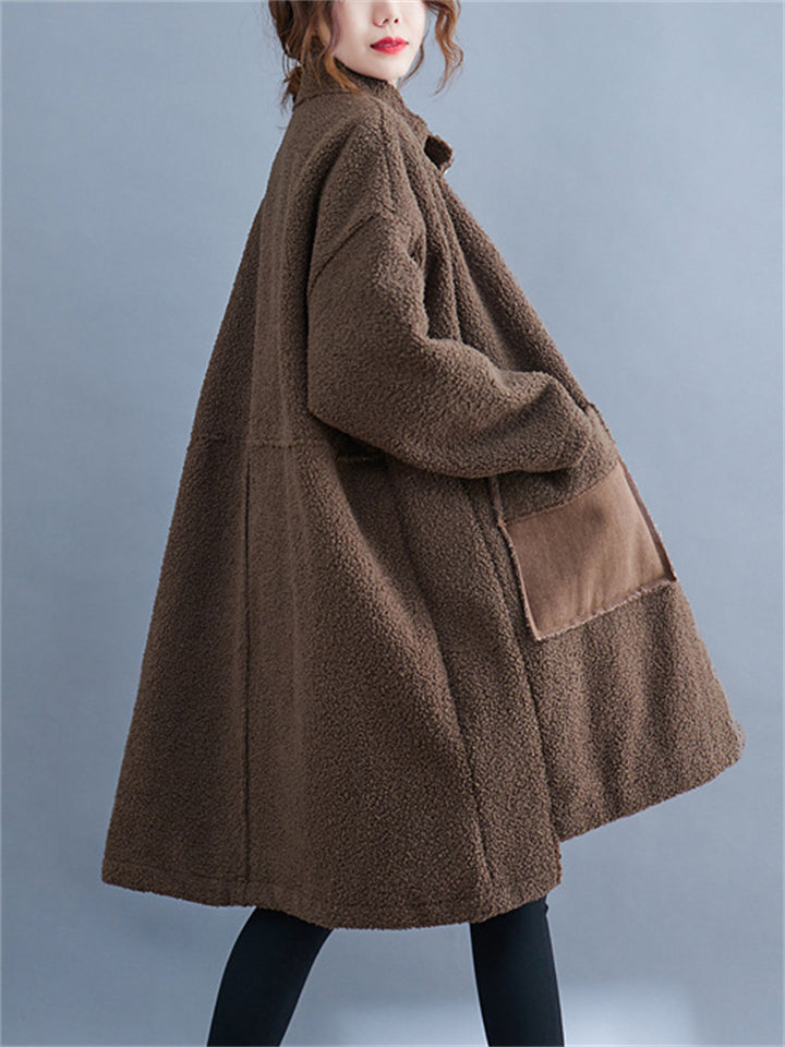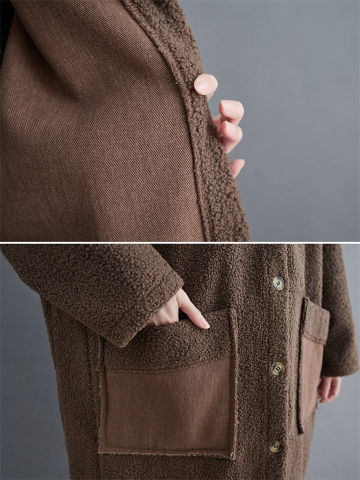 Women's Winter Vintage Solid Color Fleeced Faux Suede Long Sleeve Coats