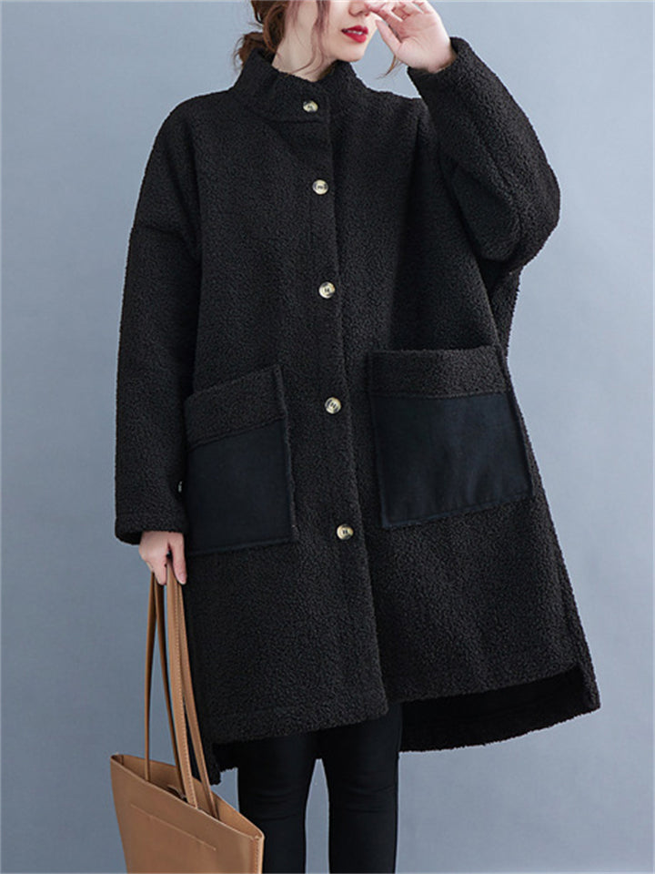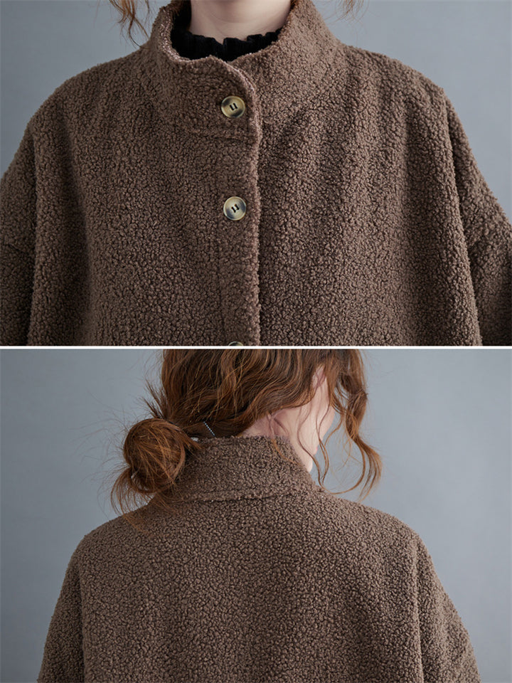 Retro Short Solid Solor Long Sleeve Pockets Coat for Women