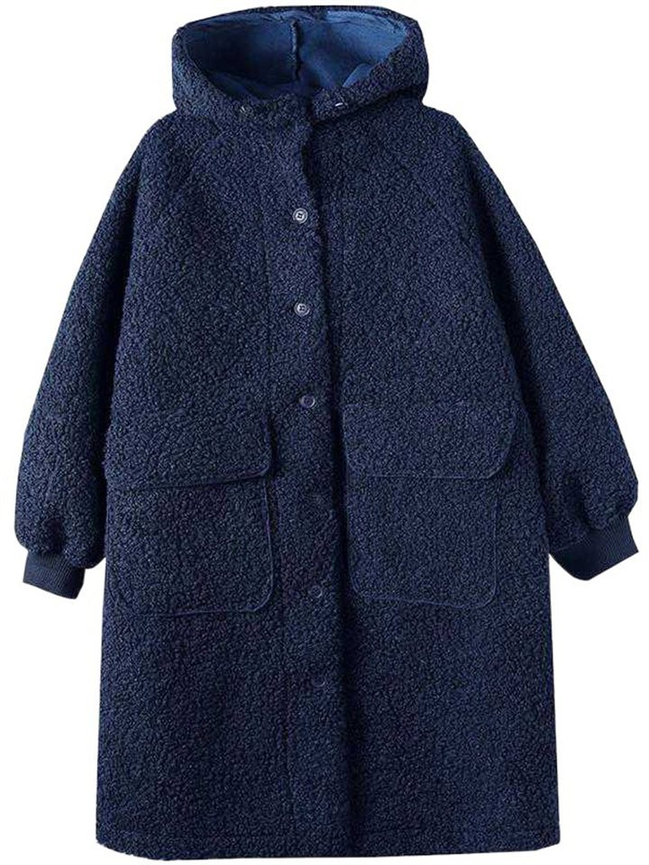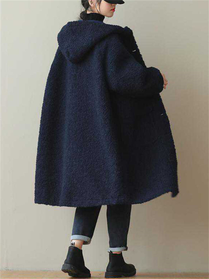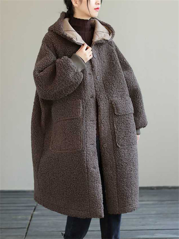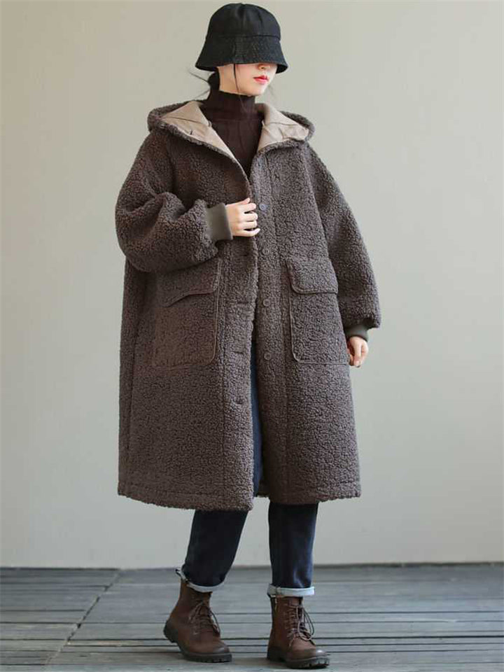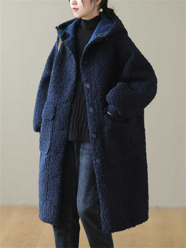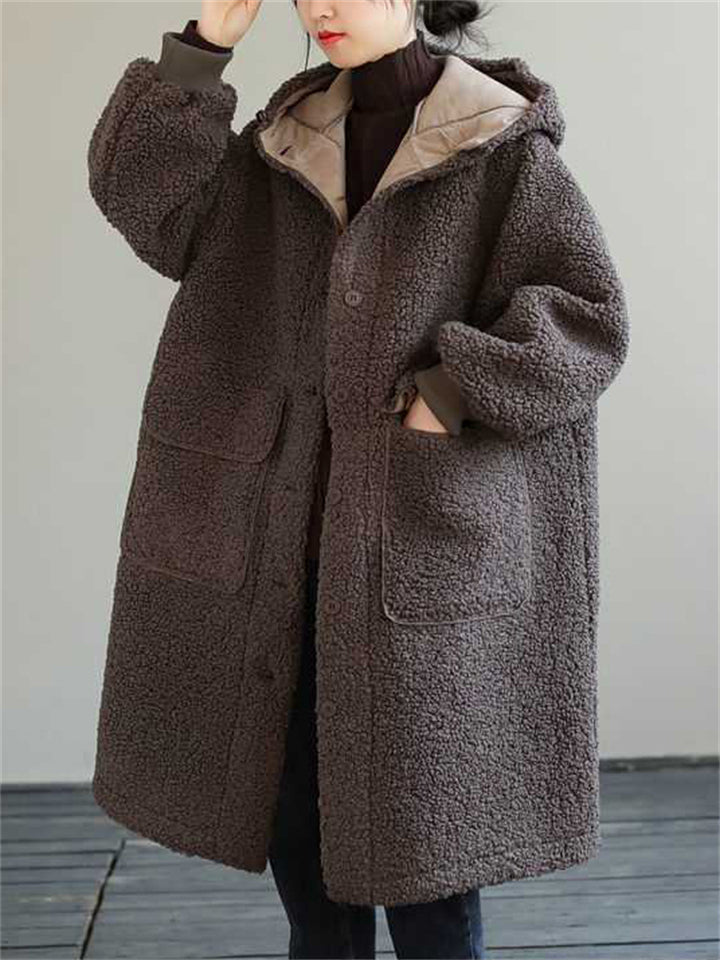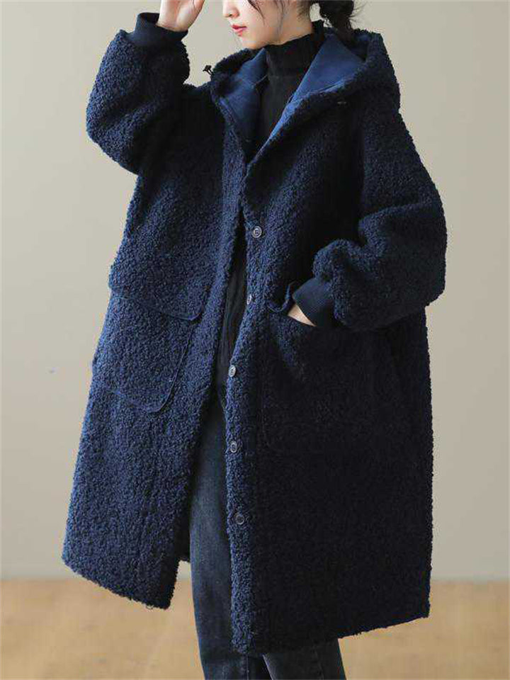 Women's Plain Long-sleeved Mid-length Faux Lambswool Coats