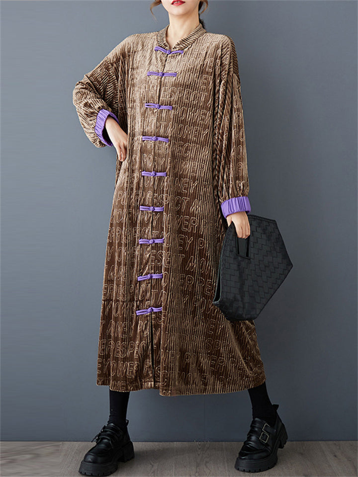 Women's Retro Simple Ethnic Style Patchwork Loose Long Sleeve Coat