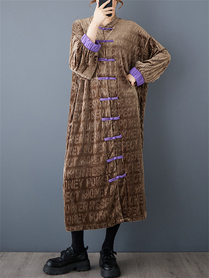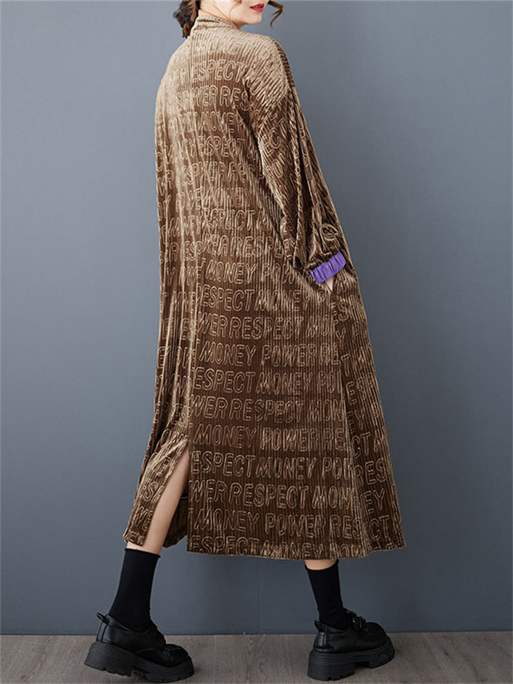 Women's Retro Brown Contrast Color Letter Print Long Coat