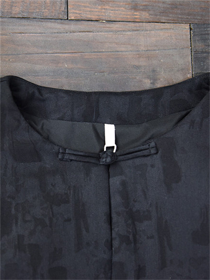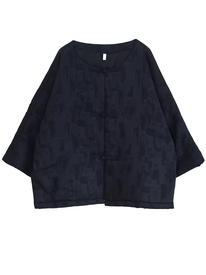 Women's Retro Knot Button 3/4 Sleeve Round Neck Cotton Coat