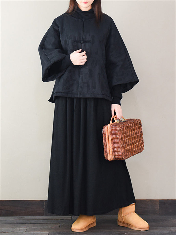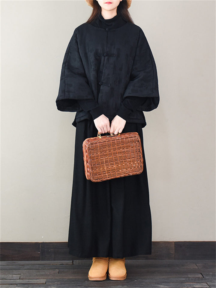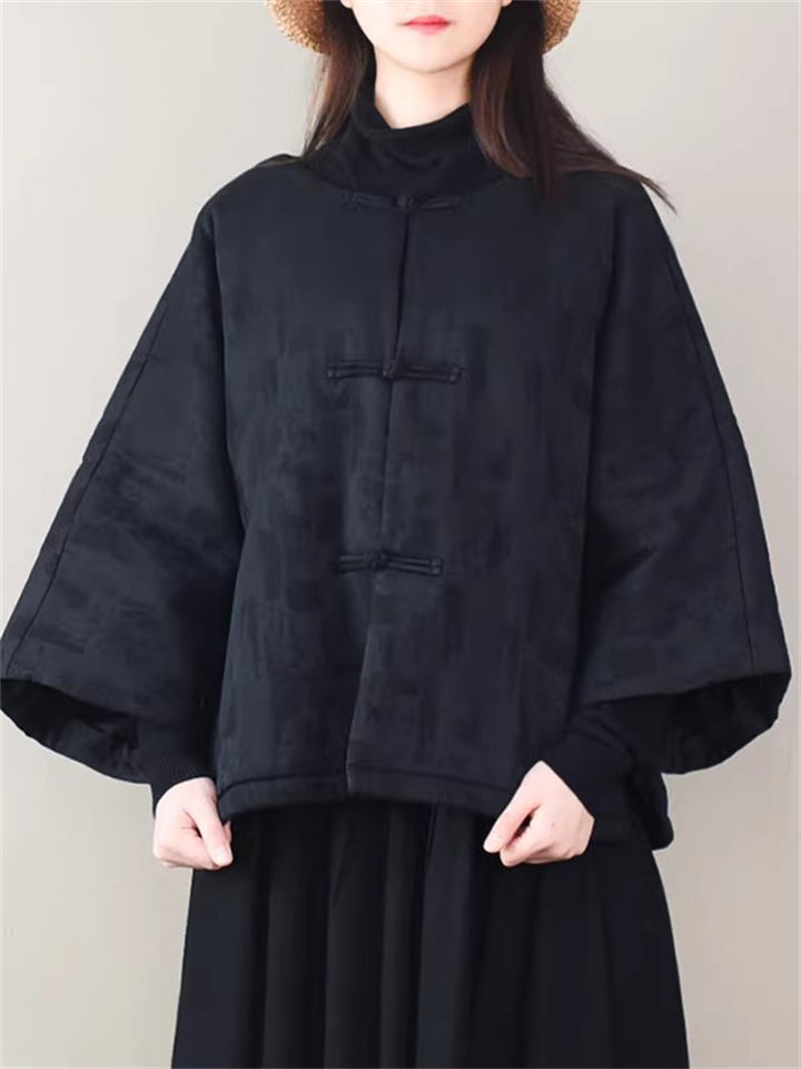 Women's Ethnic Style Trimmings Patchwork Black Cardigan Coat