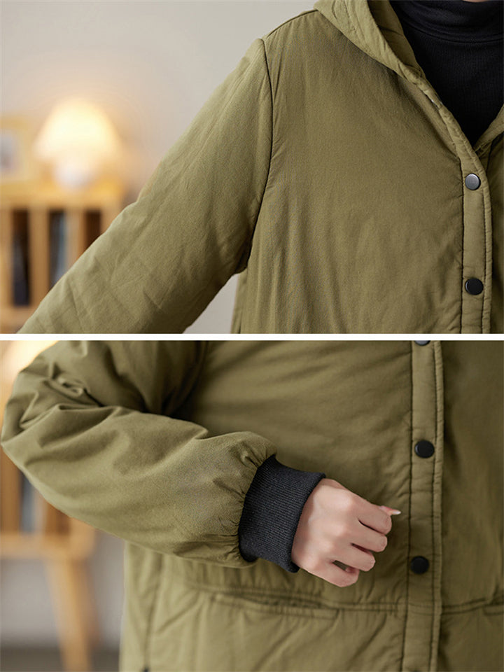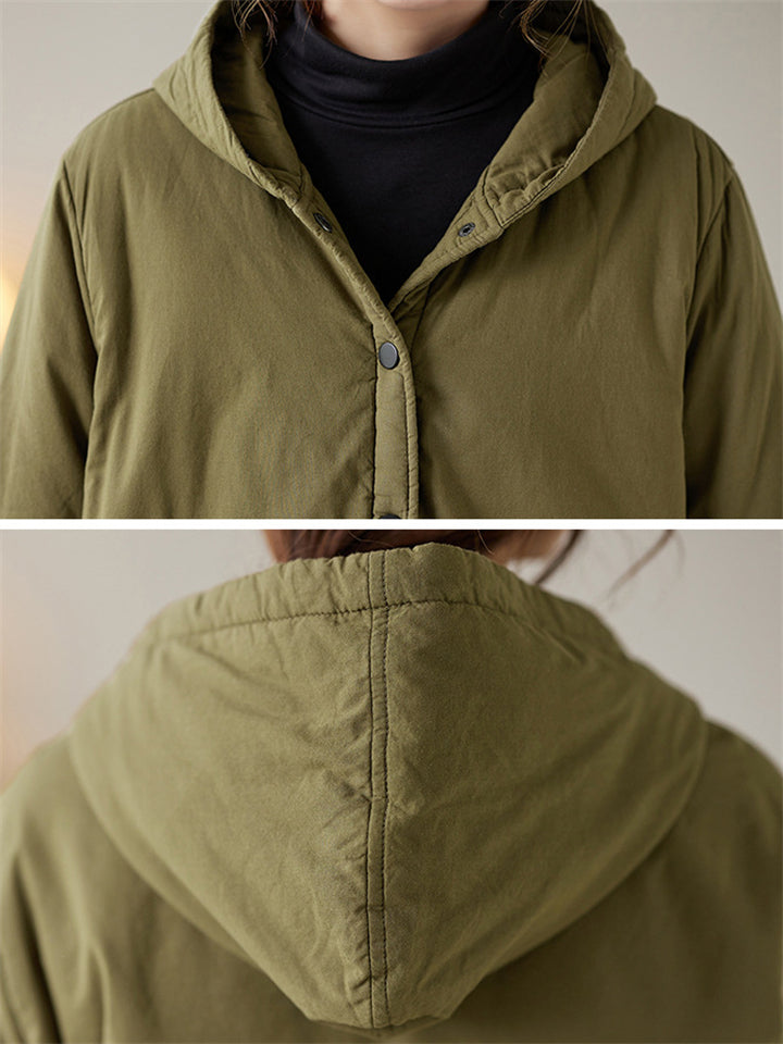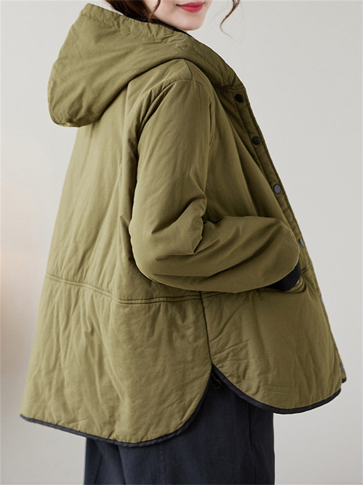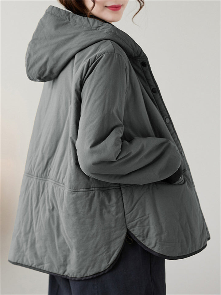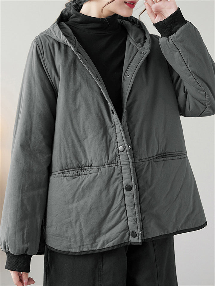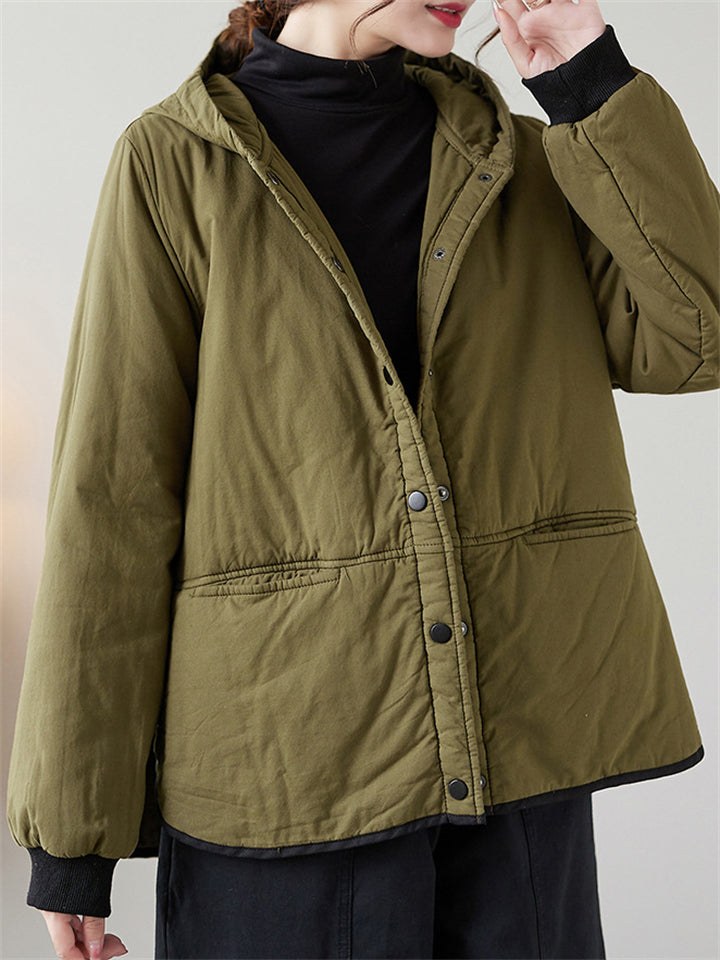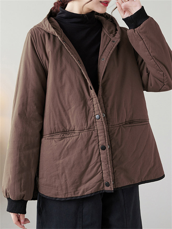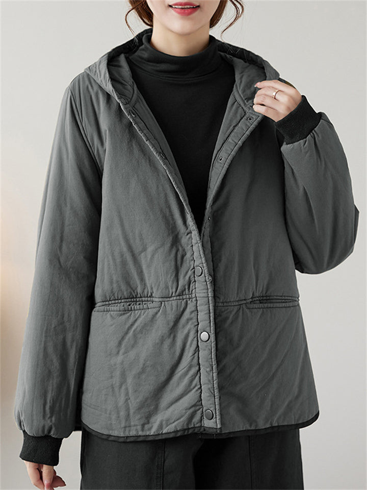 Women's Solid Color All Match Hooded Short Cotton Coat