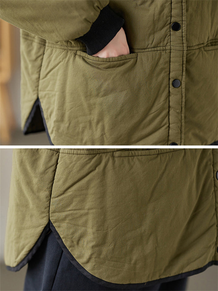 Women's Retro Print Stand Collar Long Sleeve Padded Coat