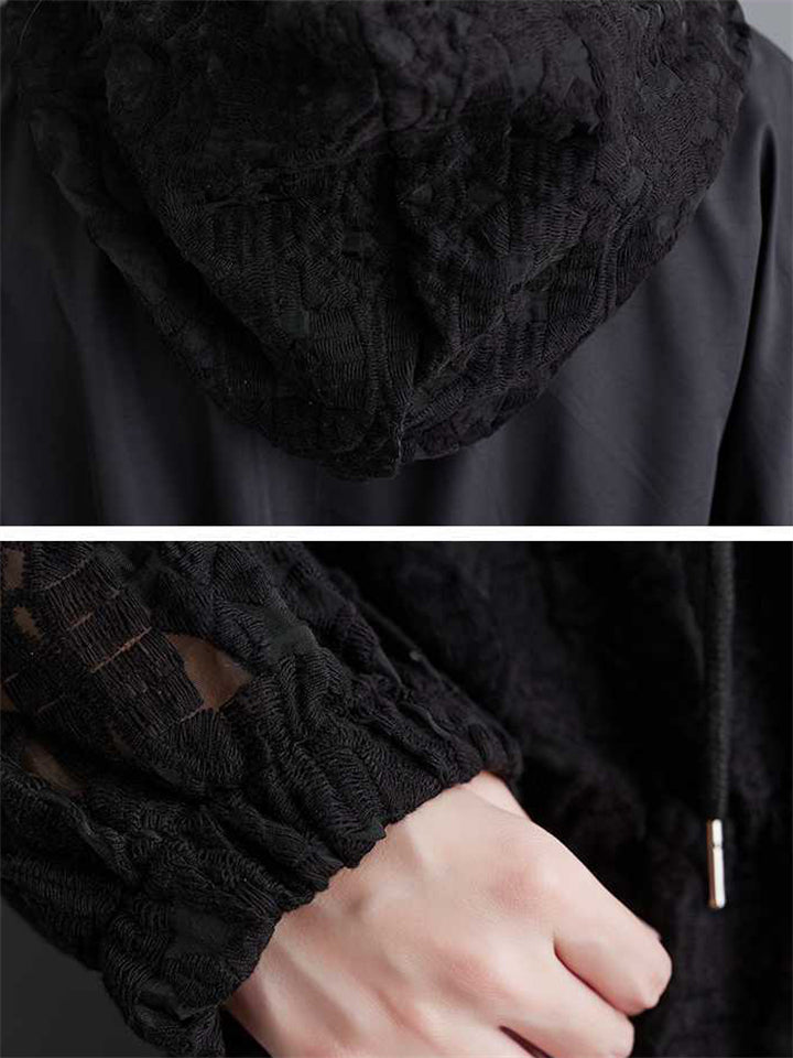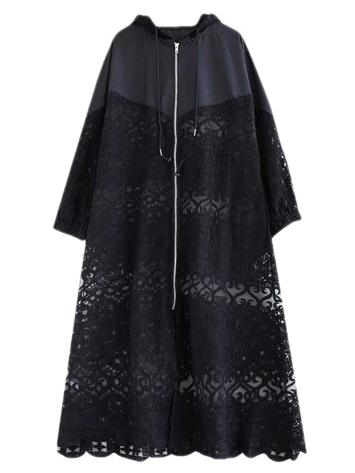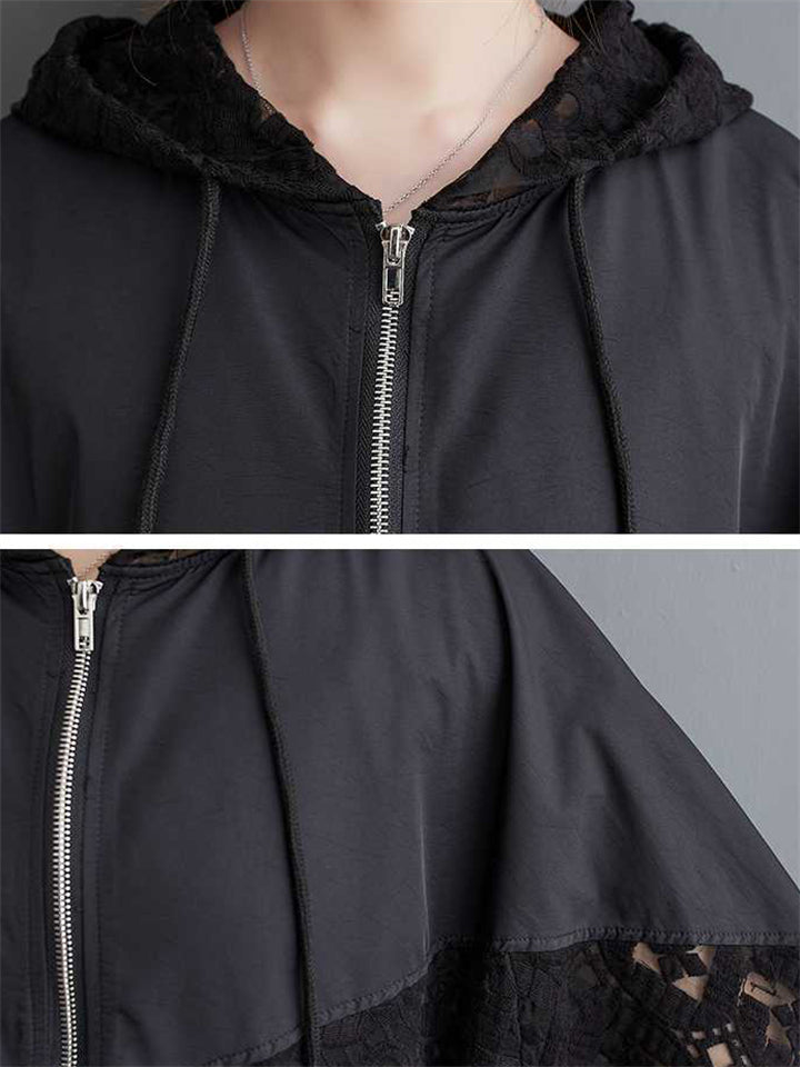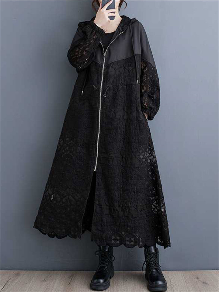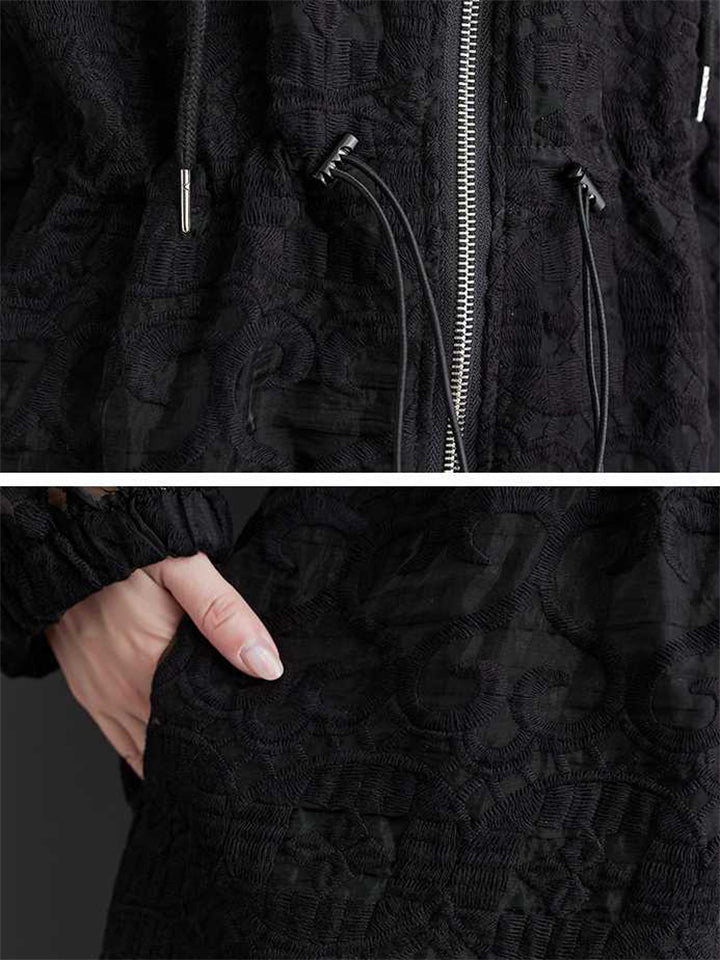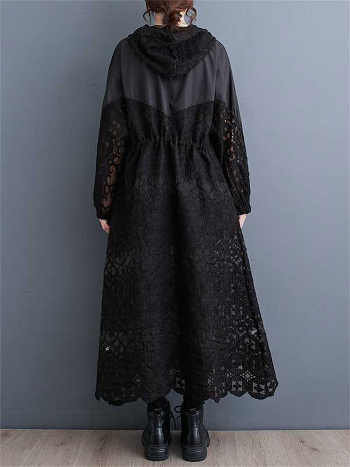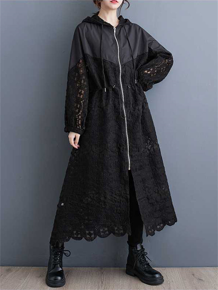 Women's Splicing Design Waist Drawstring Zipper Hooded Coat
