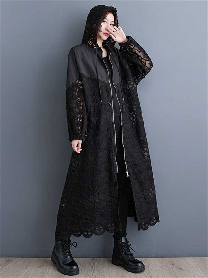 Women's Ethnic Style Trimmings Patchwork Black Cardigan Coat