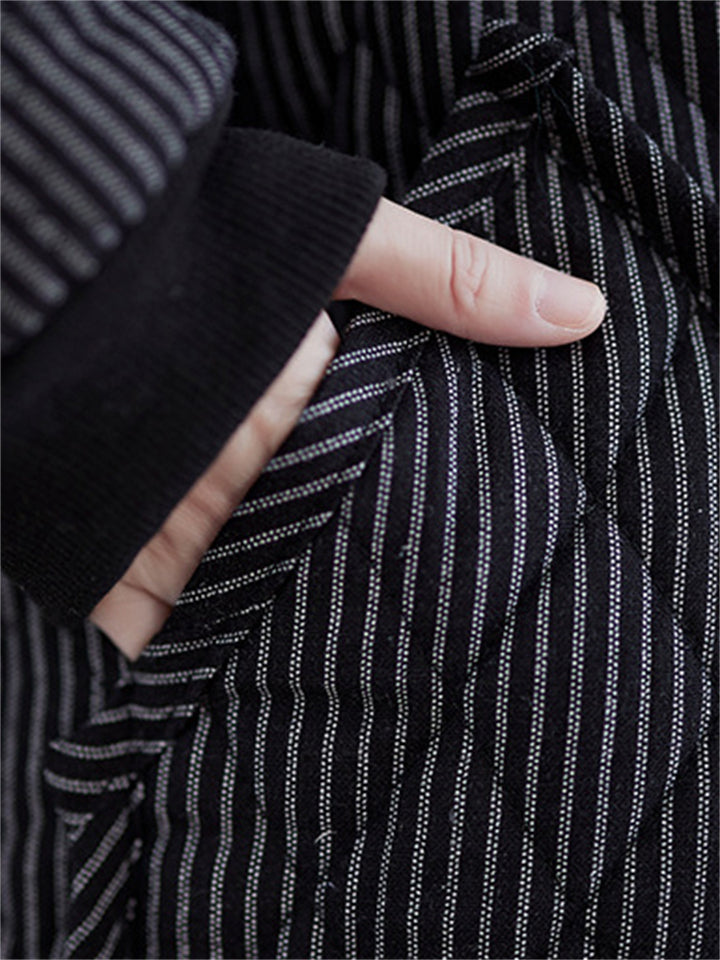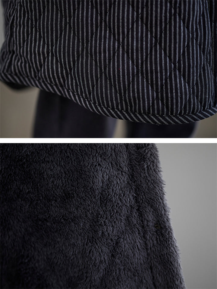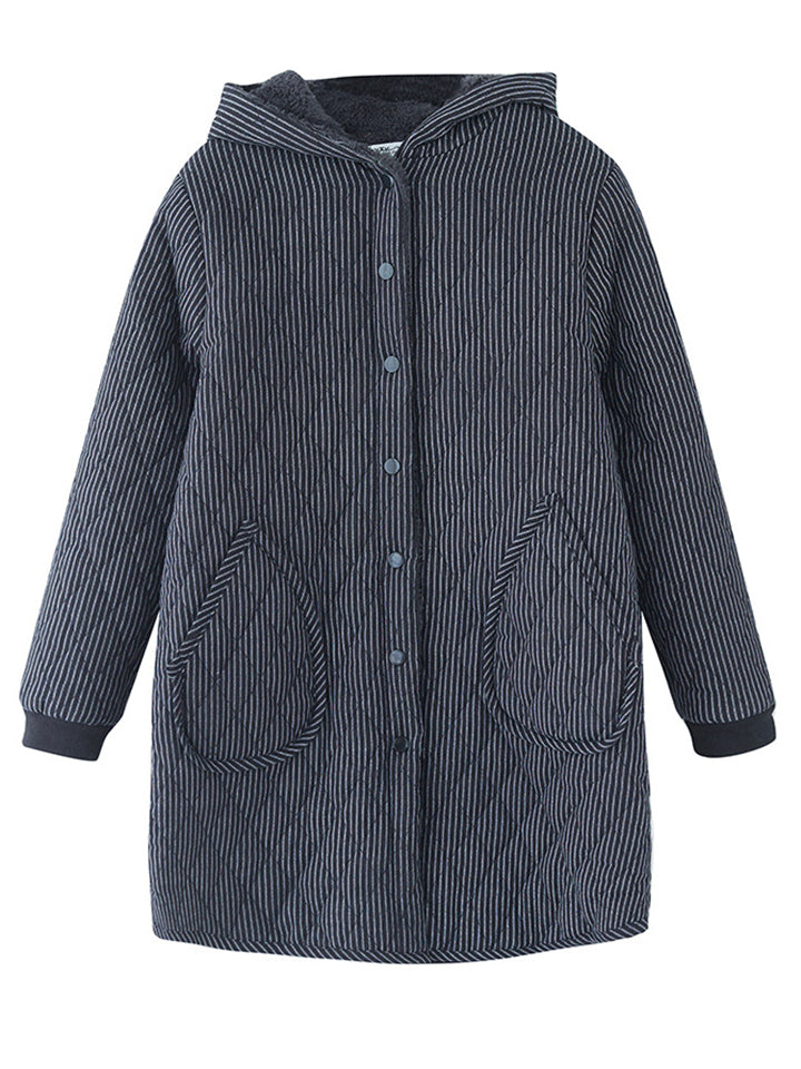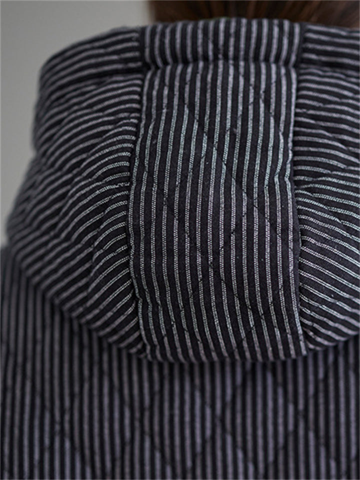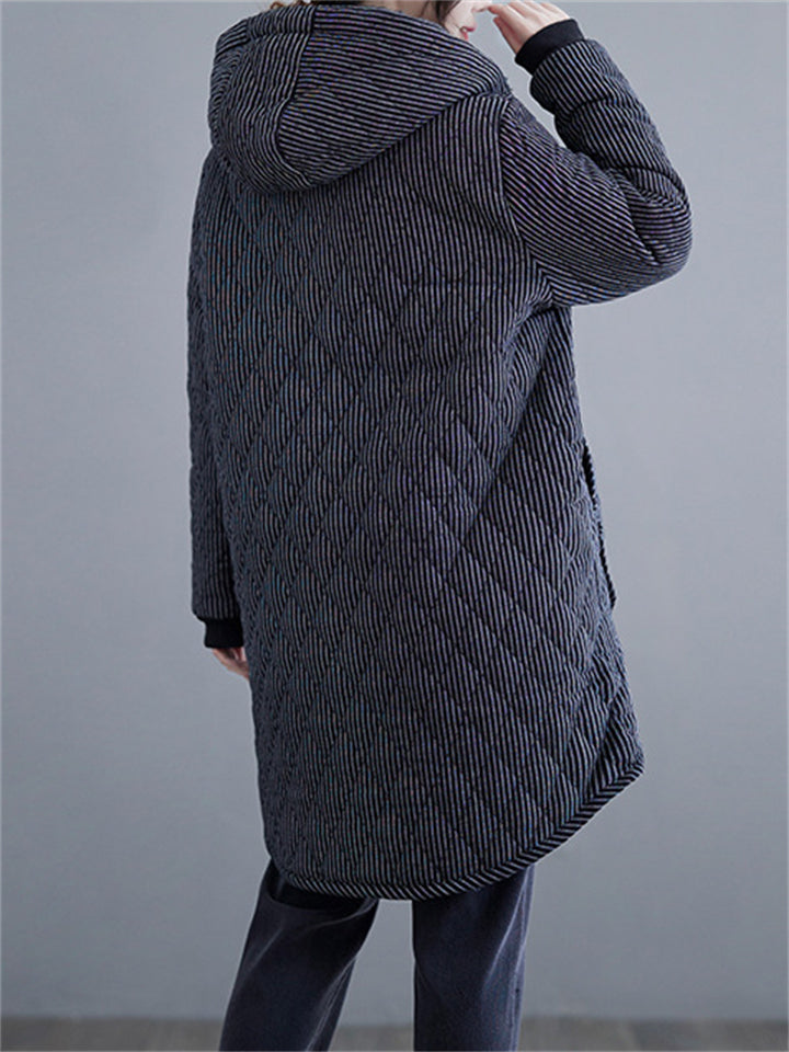 Women's Stripe Warm Plush Lining Casual Mid-Length Hooded Coat