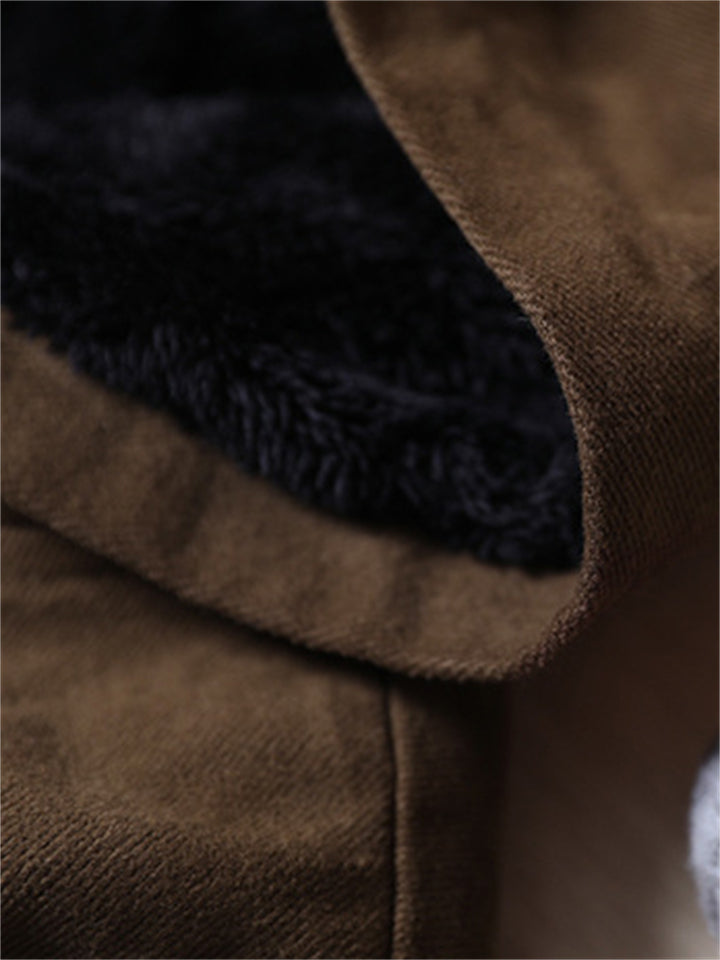 Women's Winter Vintage Solid Color Fleeced Faux Suede Long Sleeve Coats