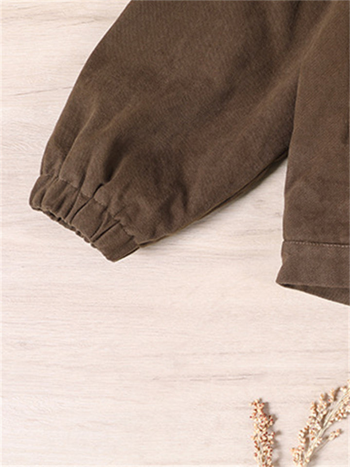 Retro Short Solid Solor Long Sleeve Pockets Coat for Women