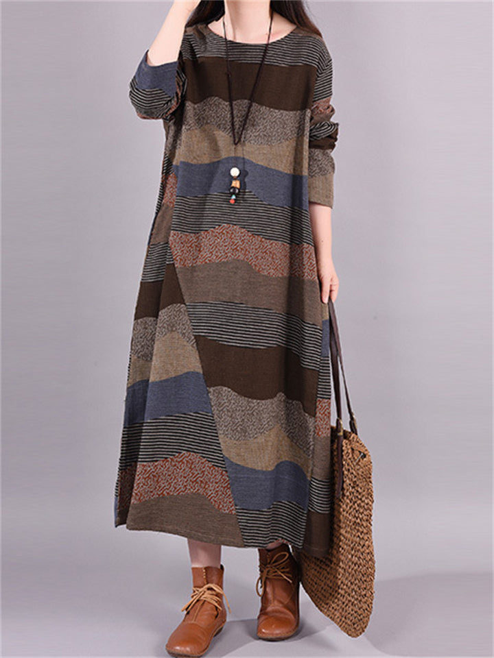 Women's Trendy Ethnic Holiday Style Print V Neck Maxi Dress