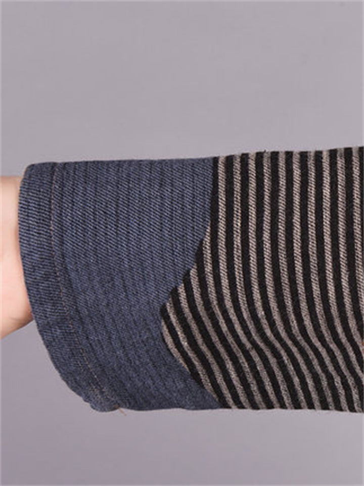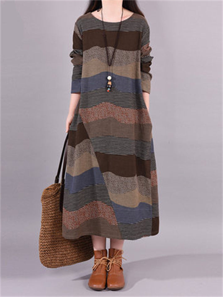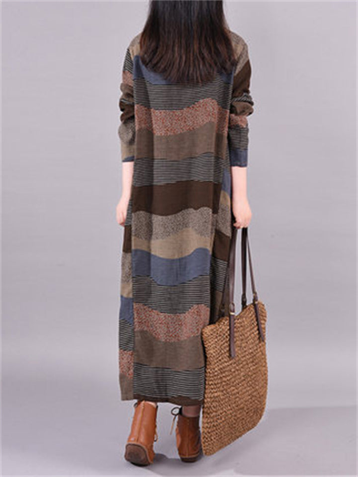 Women's Casual Contrast Color Striped Pockets Button Up Shirt Dress