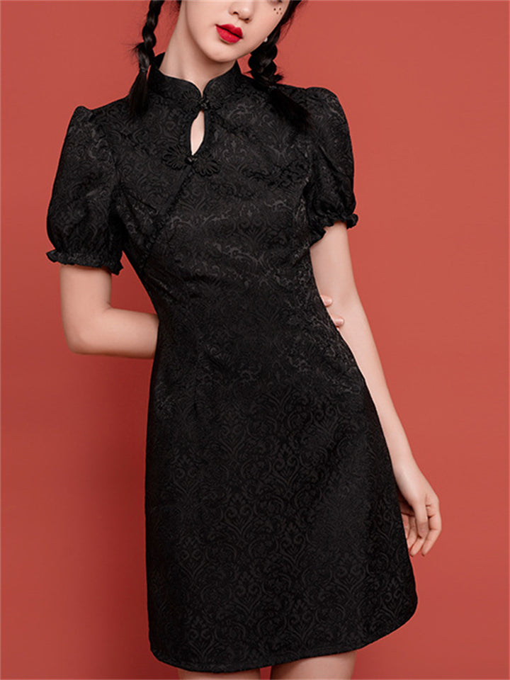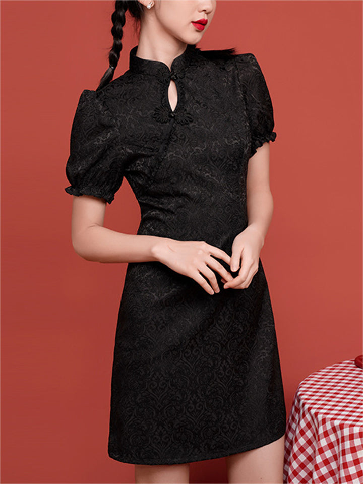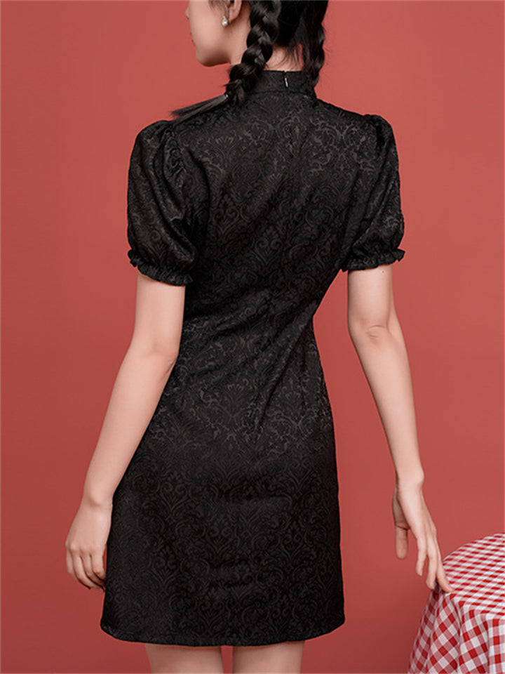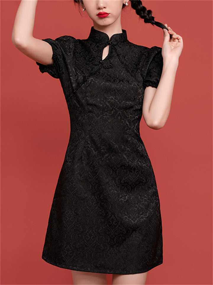 Wine Red Mini Qipao with Ancient Loong Jacquard