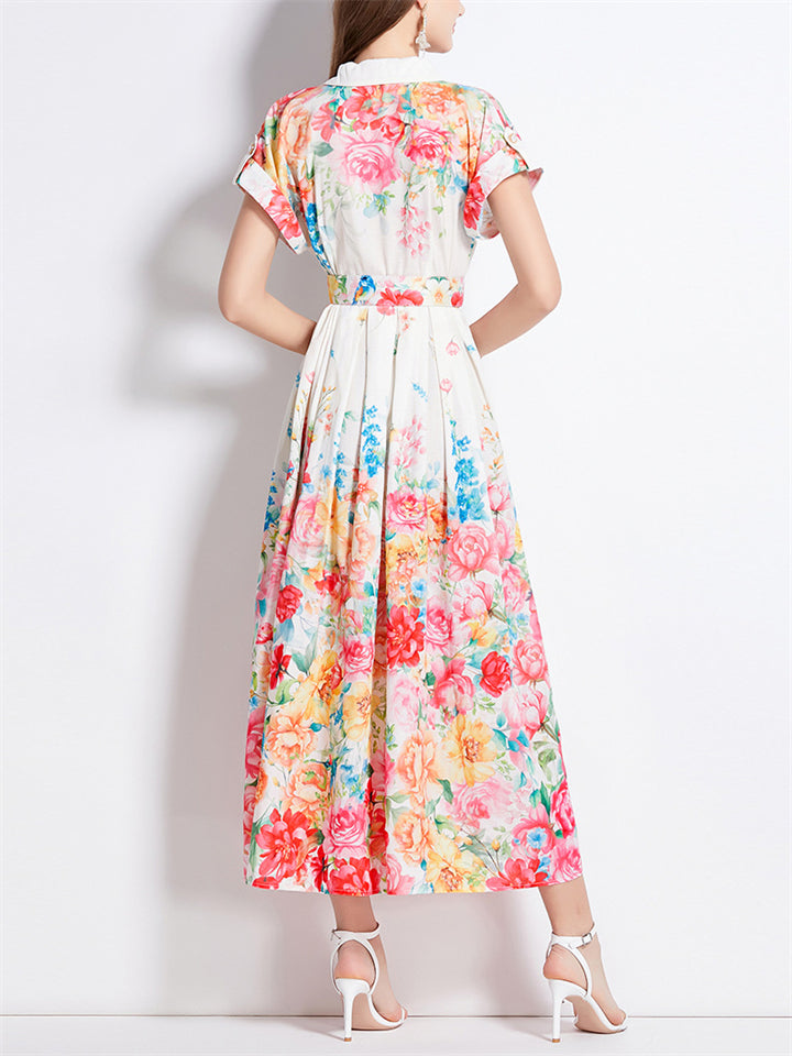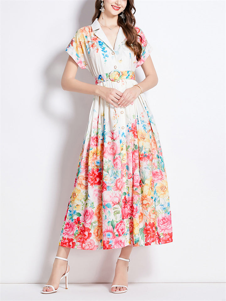 Classy Tender Lapel Blossom Print Dresses for Ladies