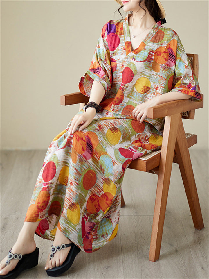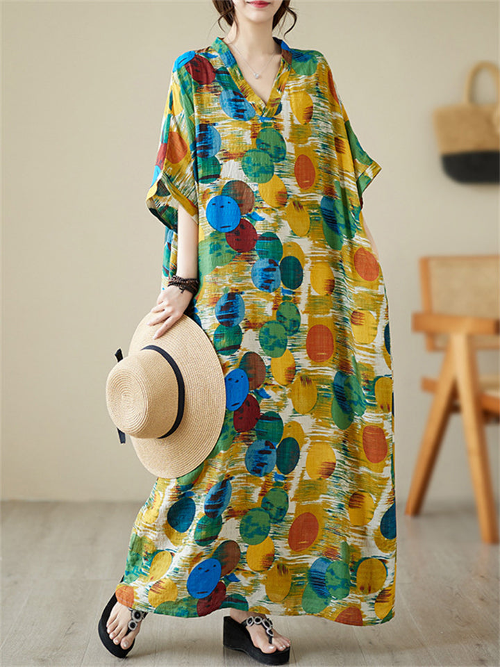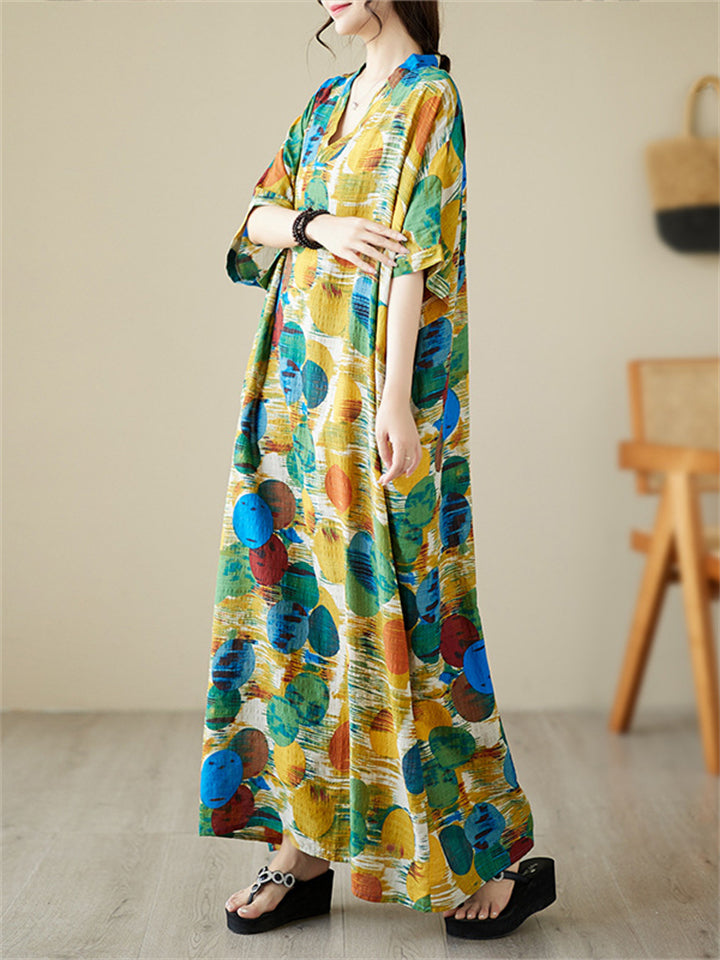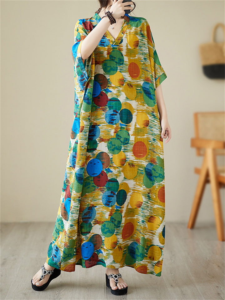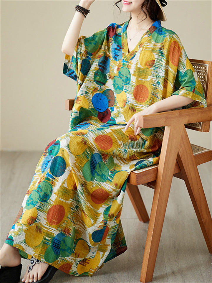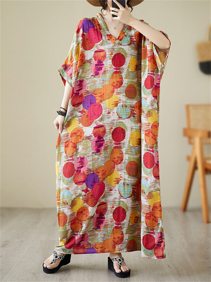 Colorful Dots Printed Women's Loose V-Neck Beach Dresses