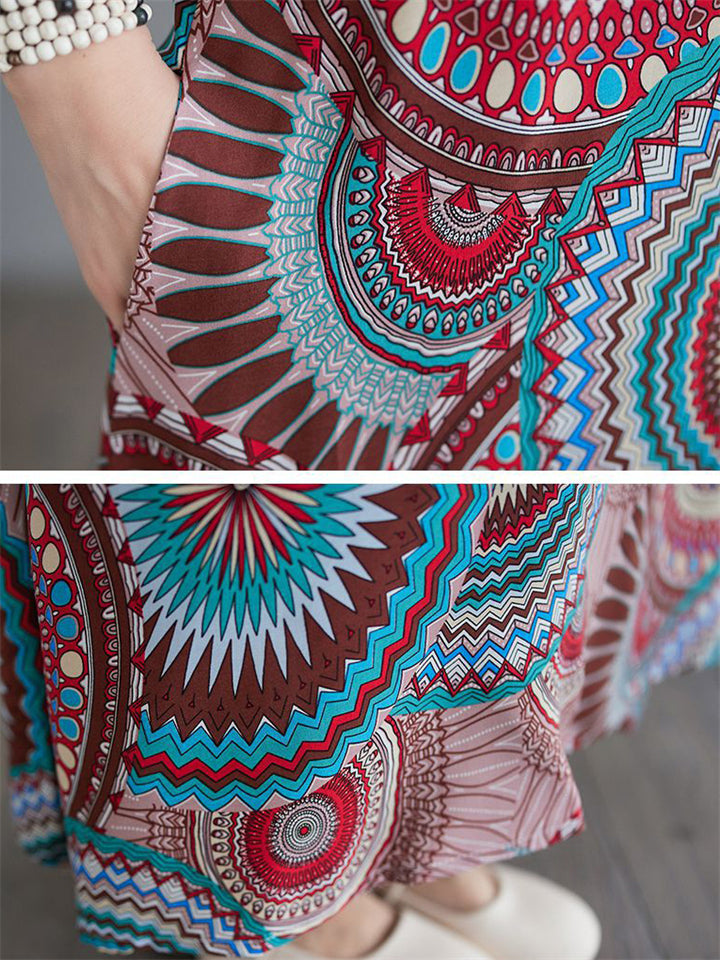 Women's Trendy Ethnic Holiday Style Print V Neck Maxi Dress