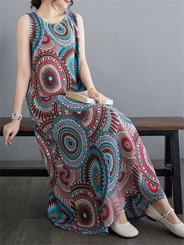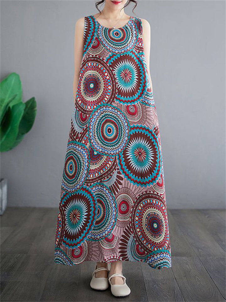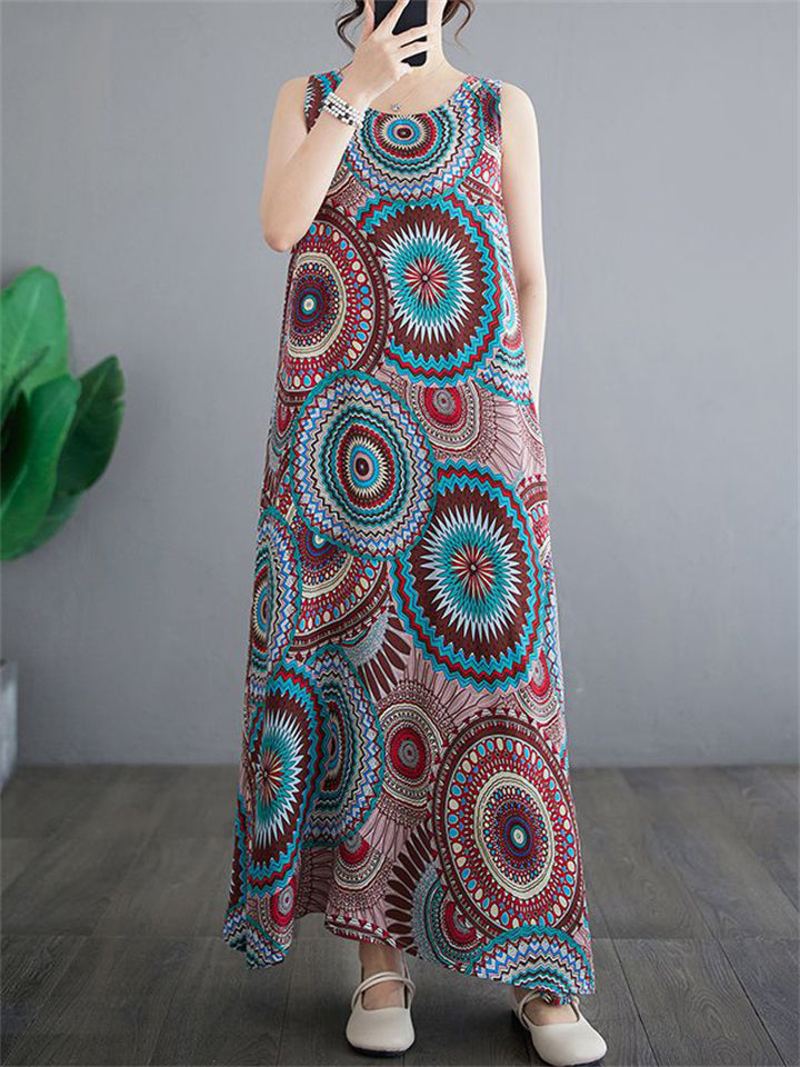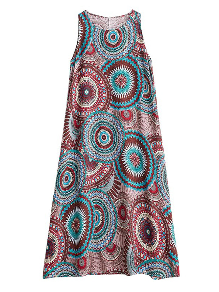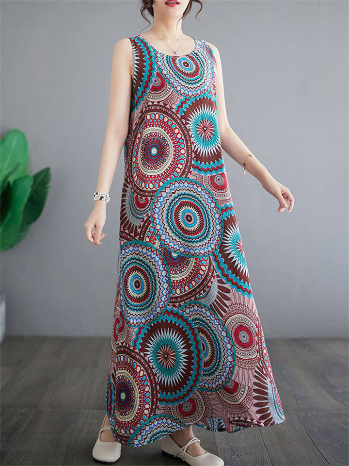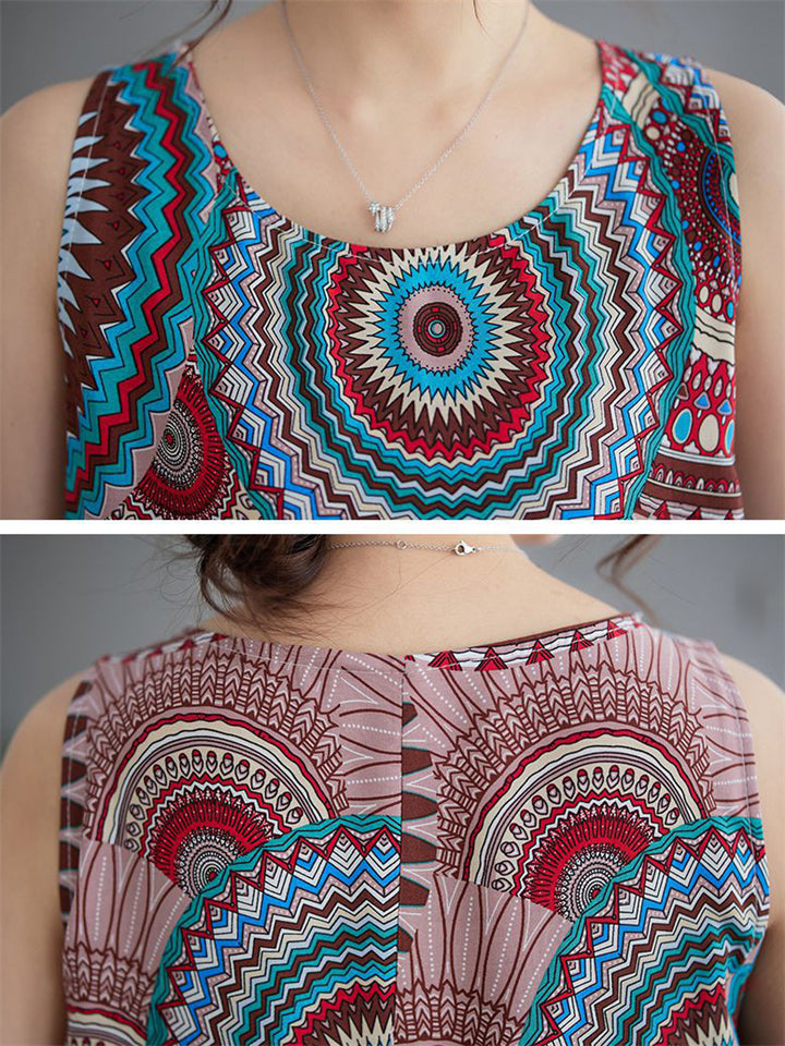 Colorful Kaleidoscope Pattern Sleeveless Boho Dress for Ladies