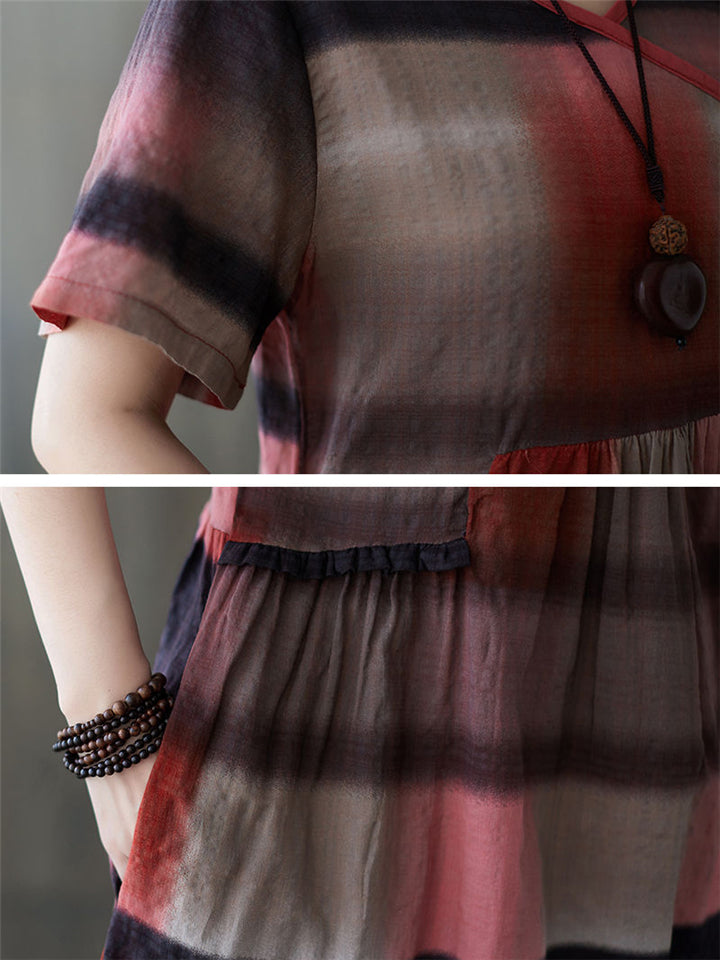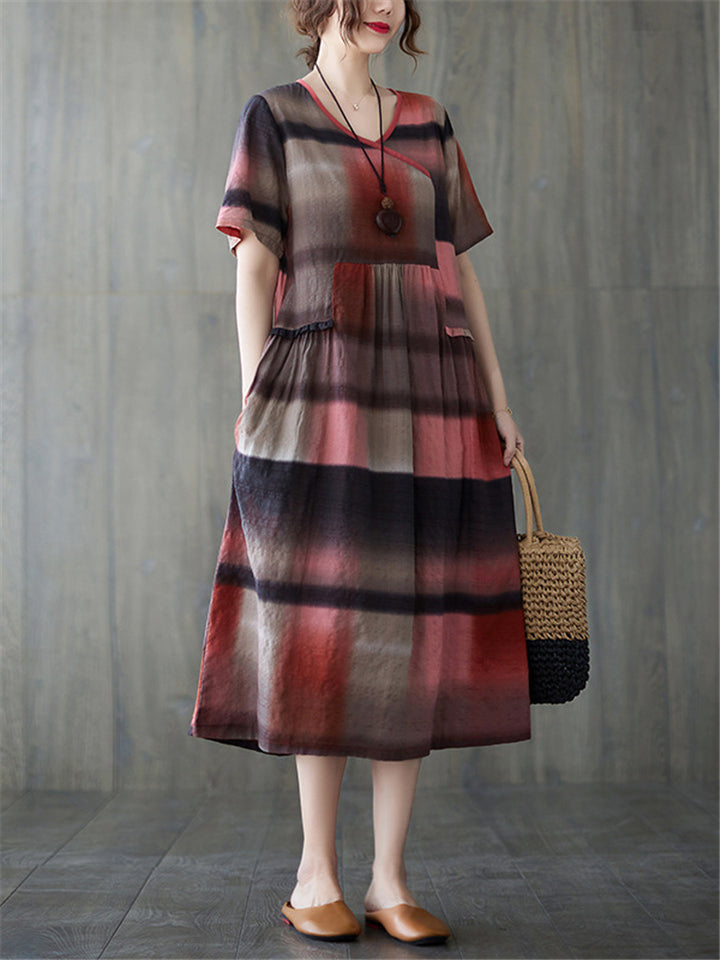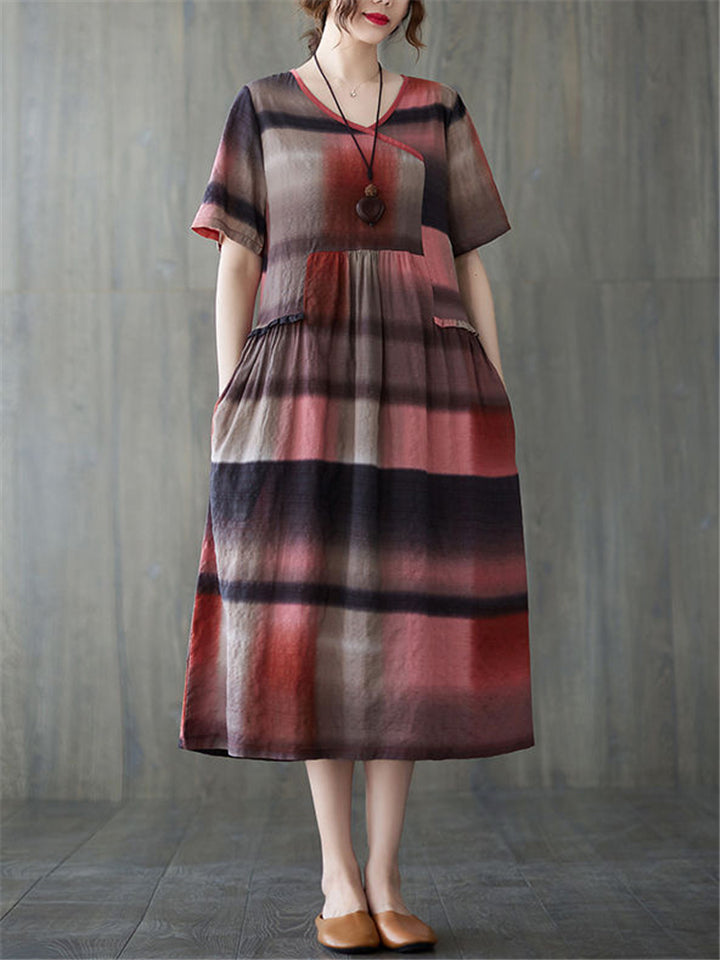 Women's Contrast Color Plaid Patchwork Tiered Dress