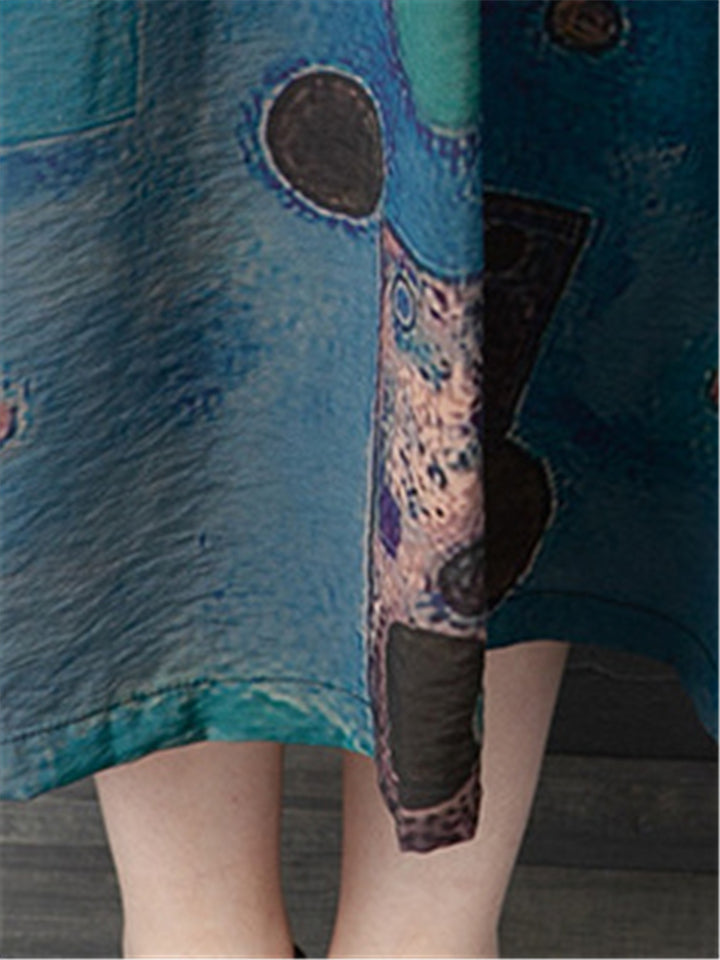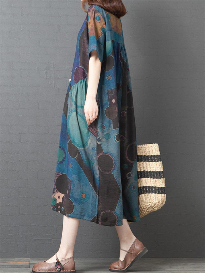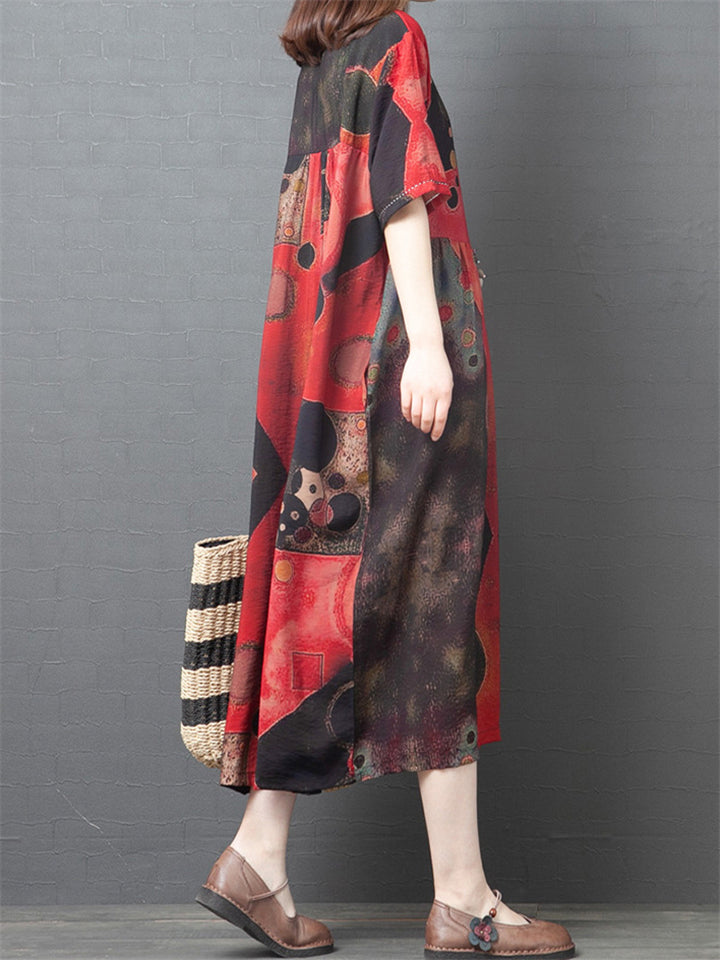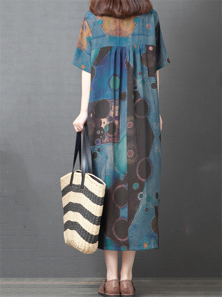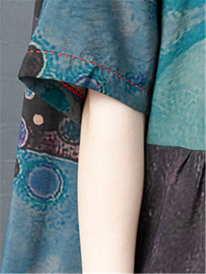 Women's Summer Printed Patchwork Half Sleeve Big Hem Maxi Dress