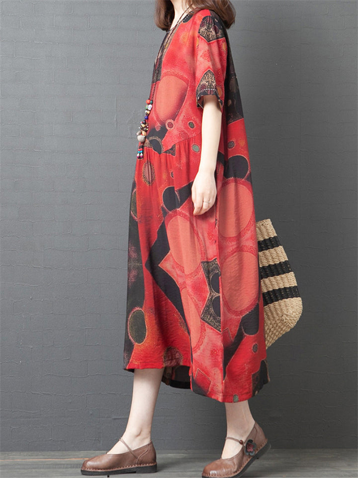 Contrast Color Printed Short Sleeve Dresses