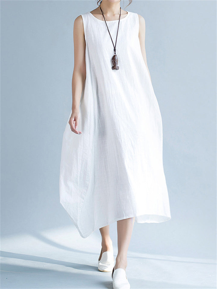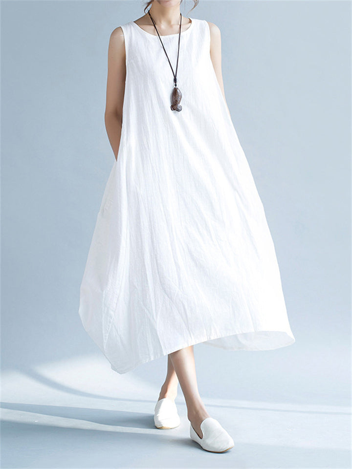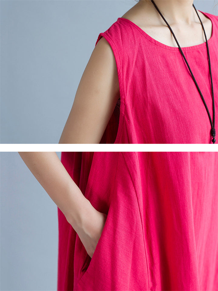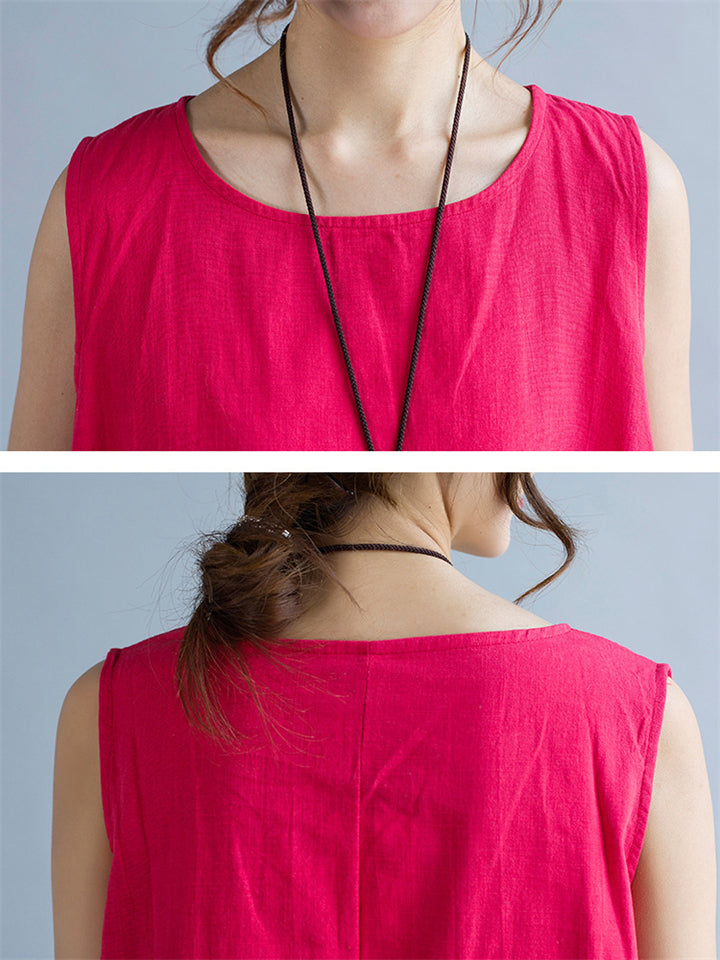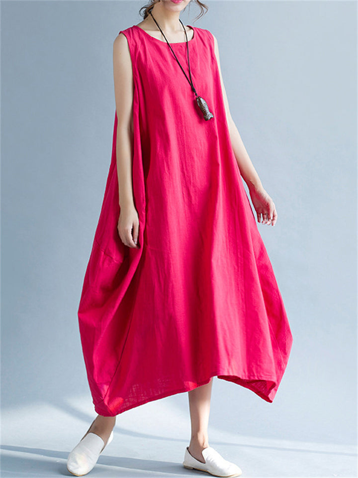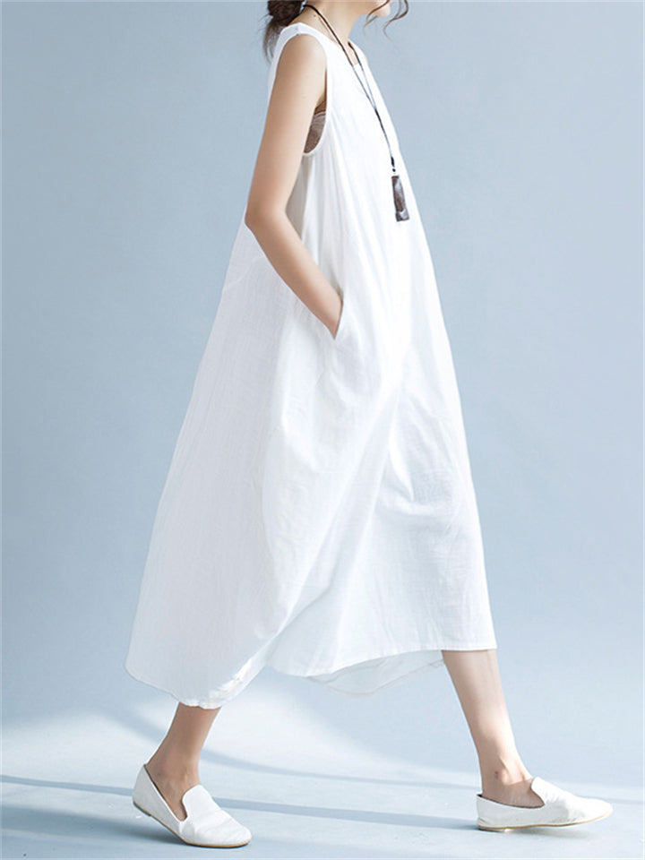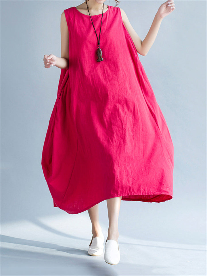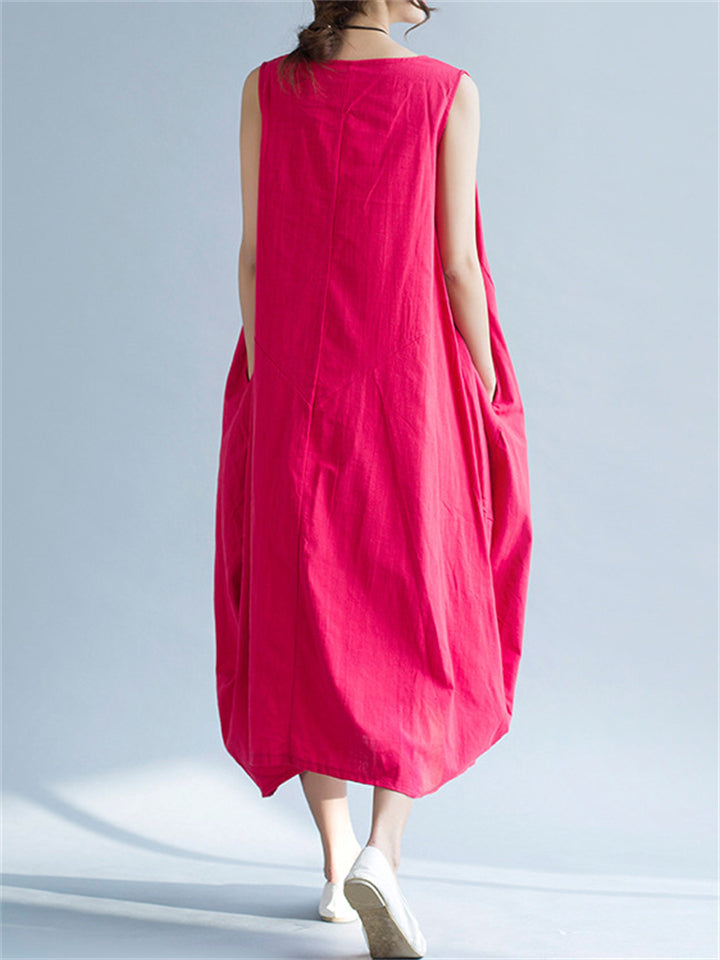 Cozy Flowy Cotton Linen Midi Sundress for Women
