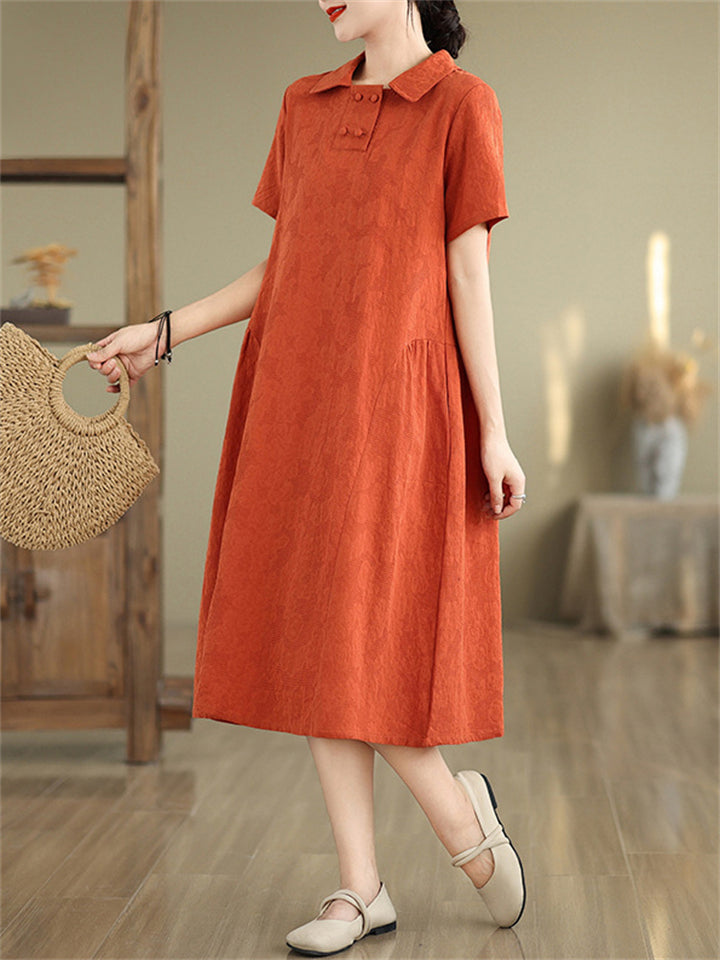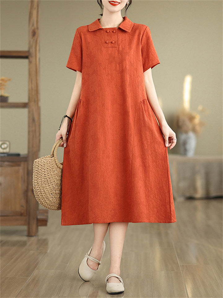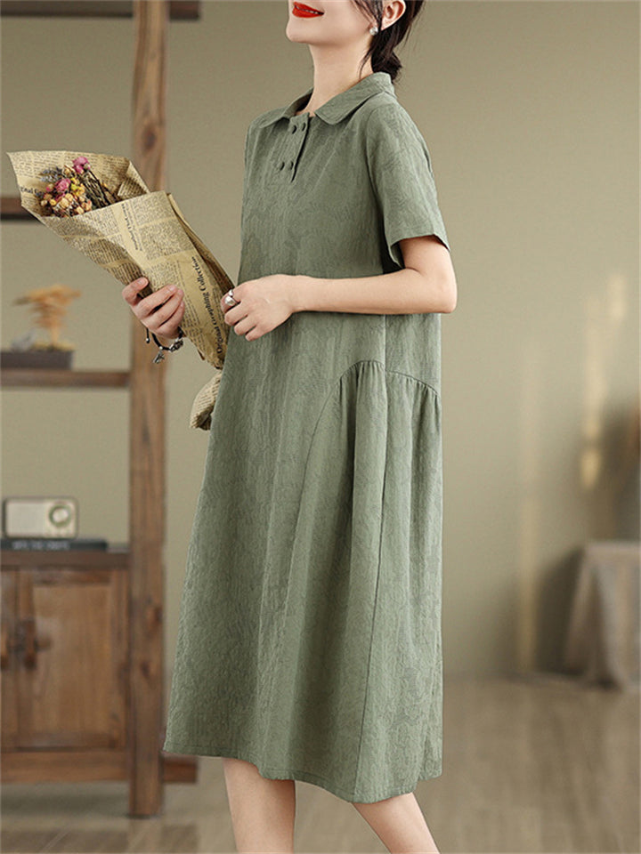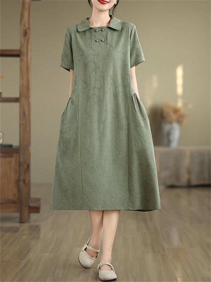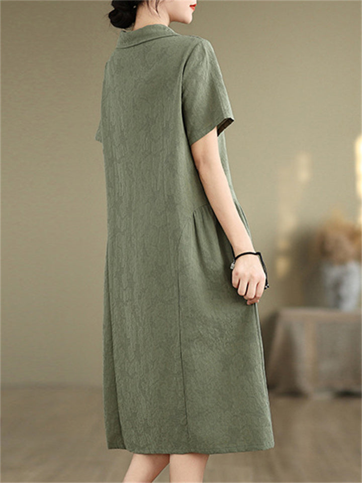 Elegant Lapel Short Sleeve Jacquard Dress for Women